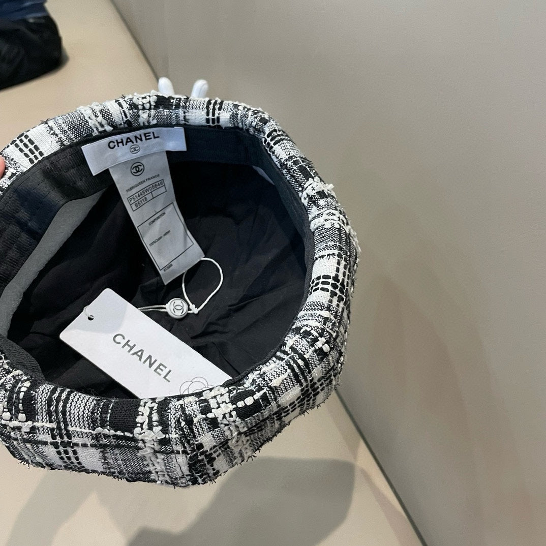 BERET HAT IN BLACK MIX WHITE WOOL TWEED 422552
