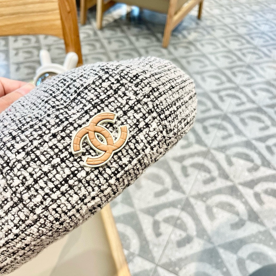BERET HAT IN BLACK MIX WHITE WOOL TWEED 430011