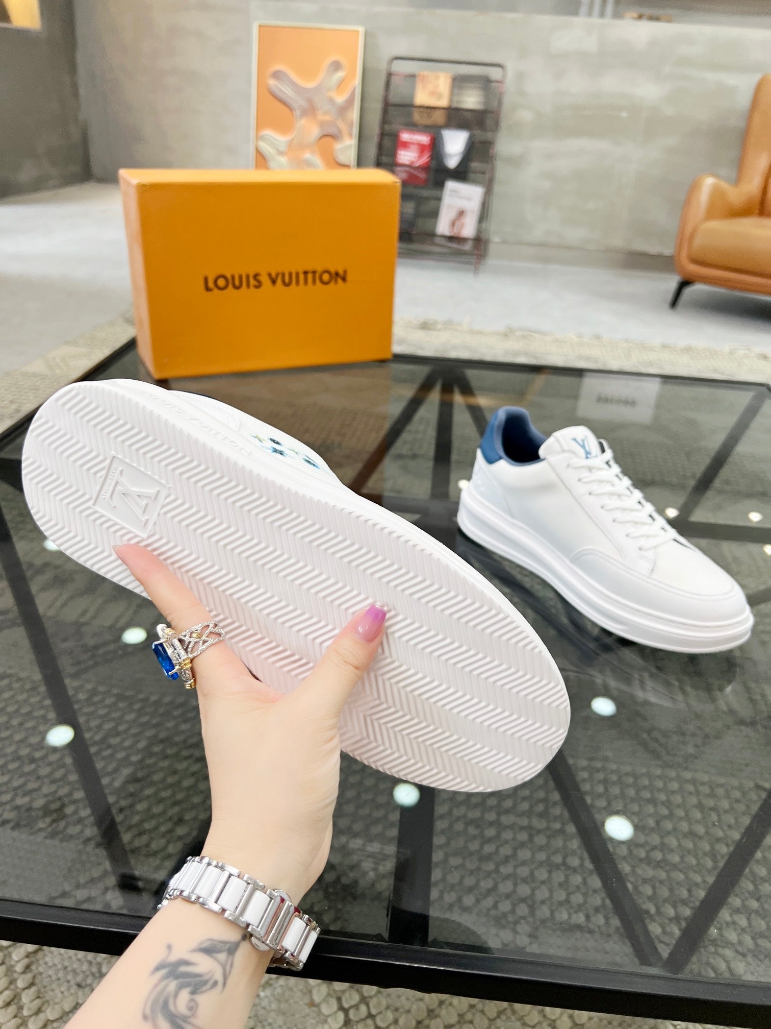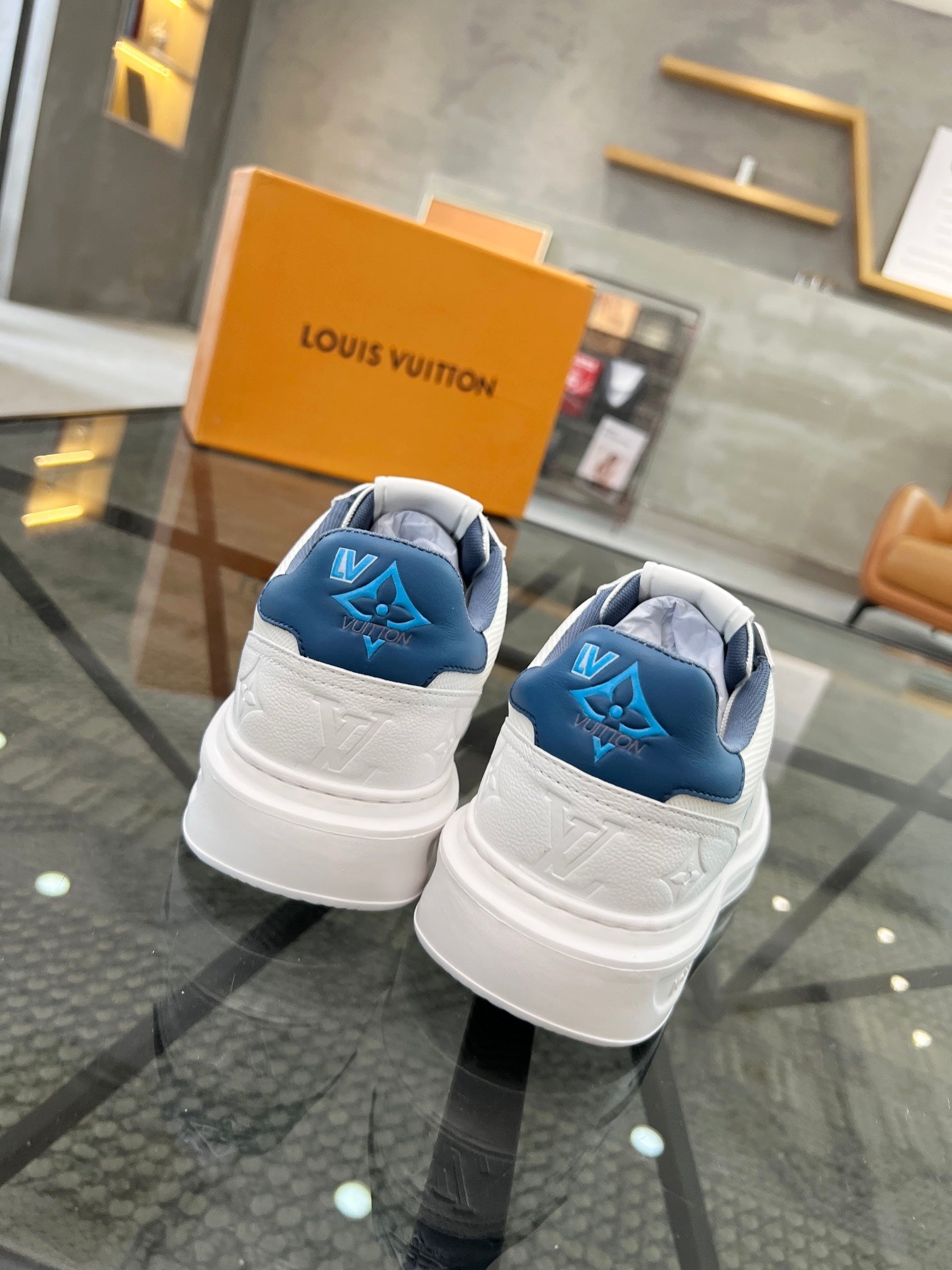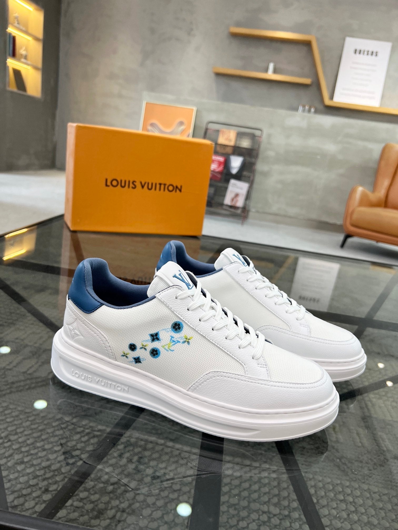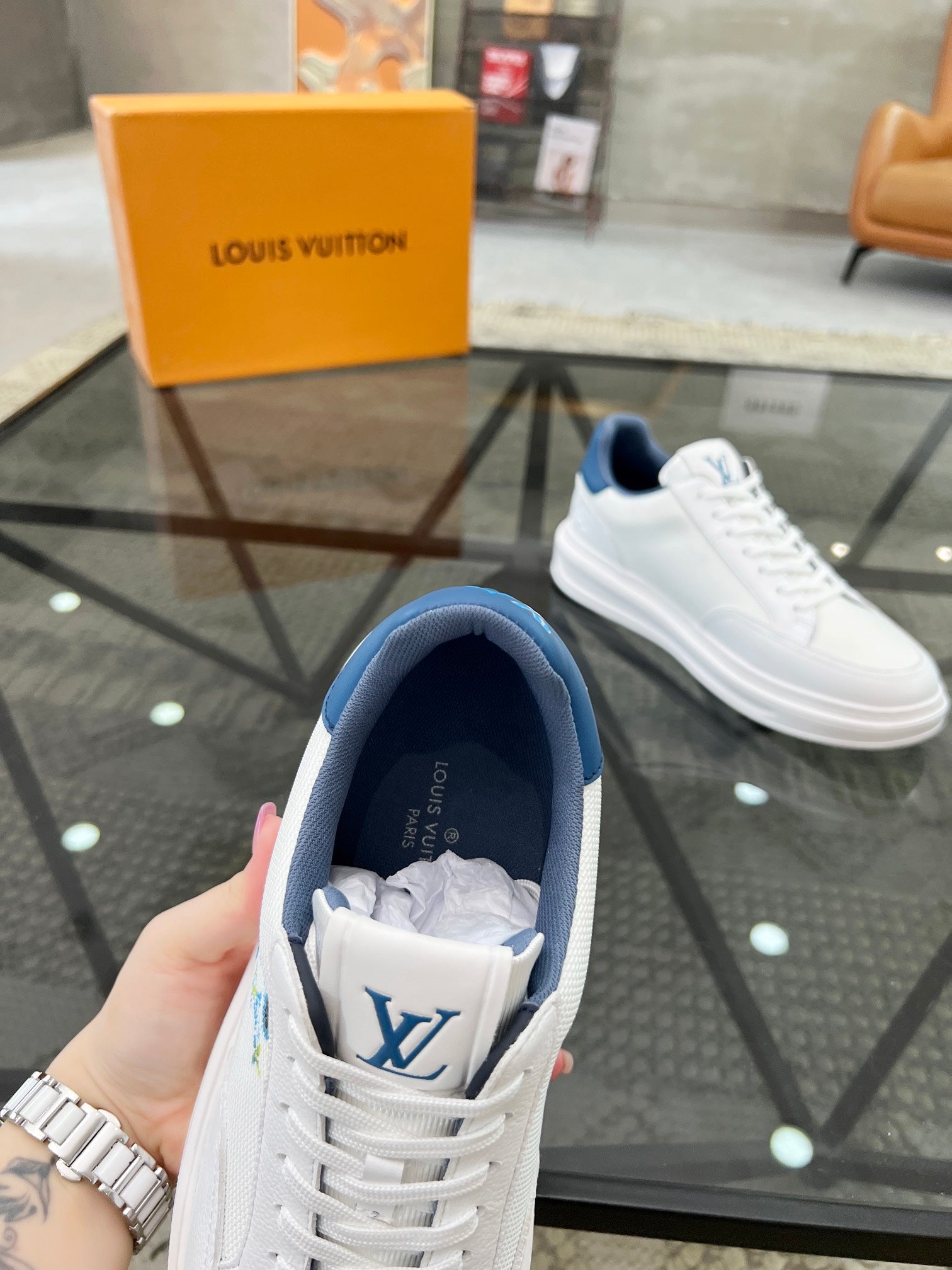 BEVERLY HILLS TRAINERS WHITE MIX DENIM BLUE CALFSKIN AND MESH FABRIC