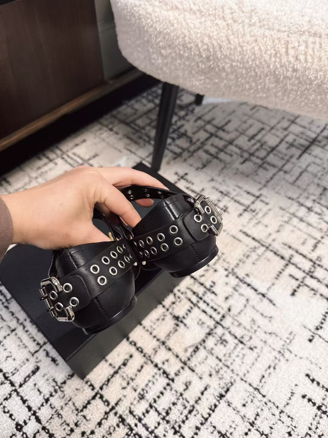 BIKER BALLET FLATS IN BLACK CALFSKIN