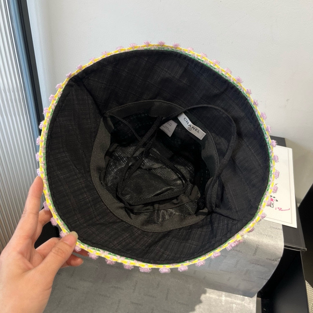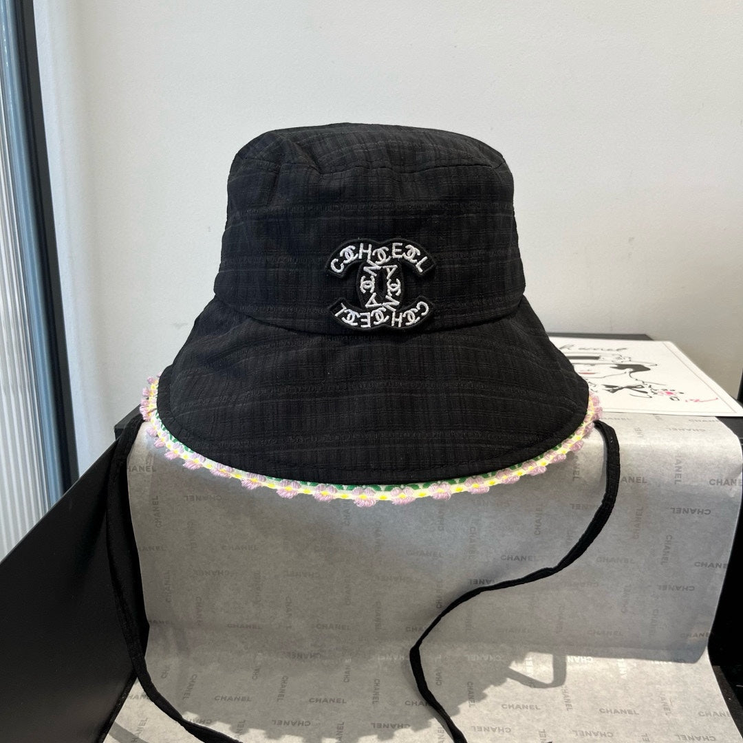 BLACK BUCKET HAT WITH FLORAL BORDER 673996