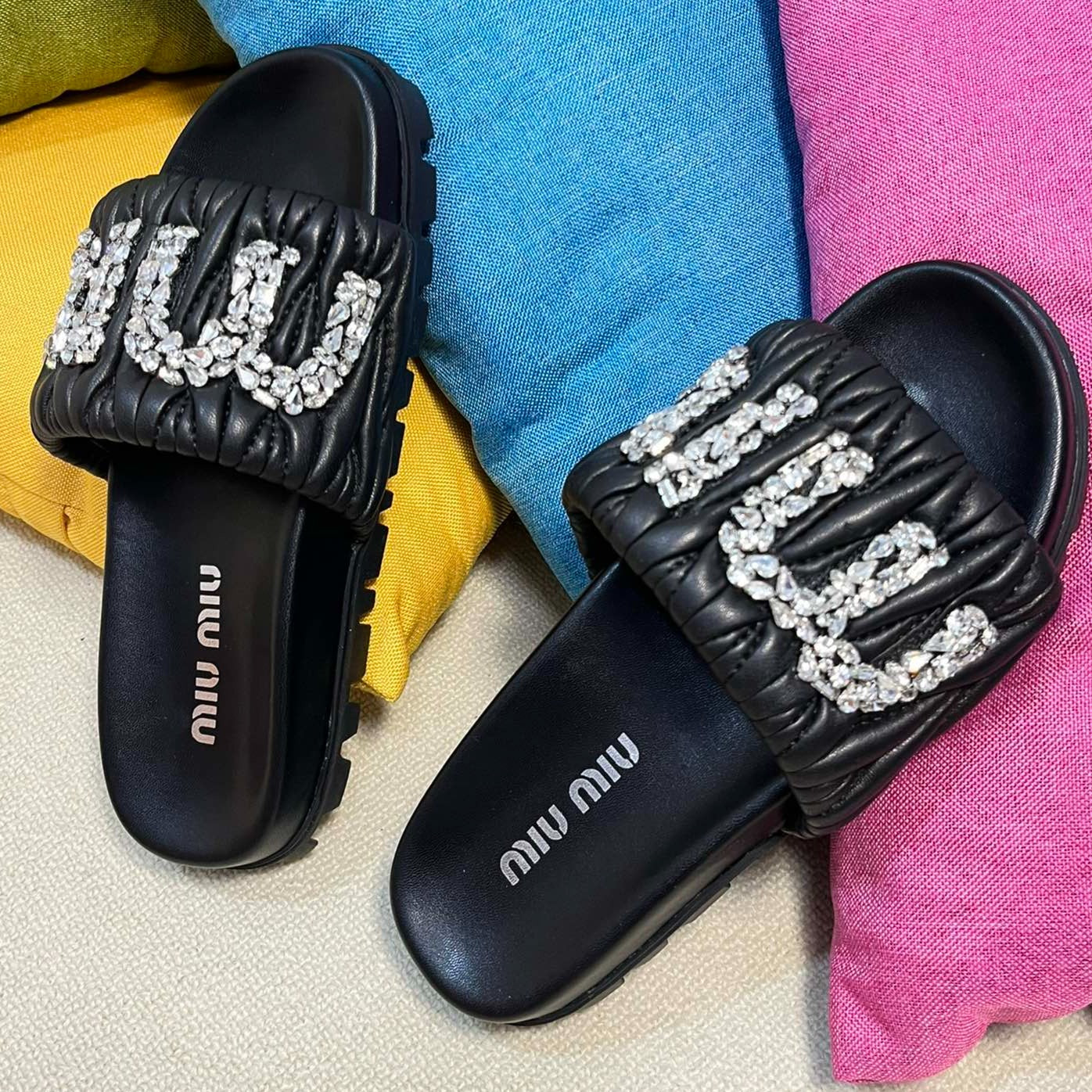 Black Sheepskin Diamond Slippers
