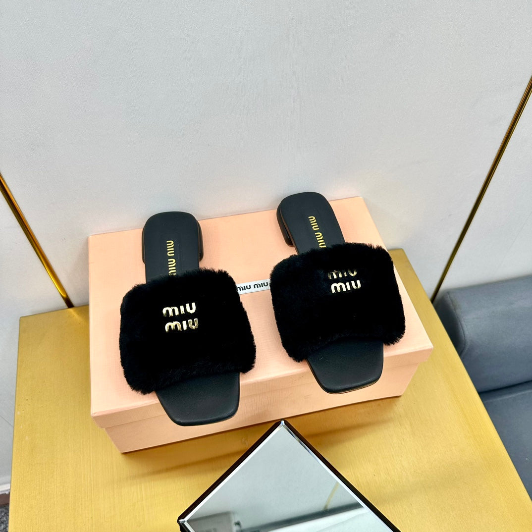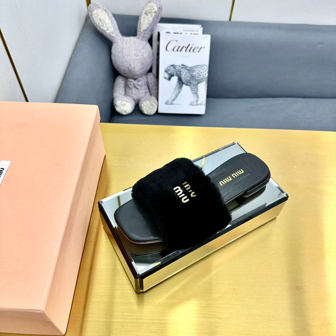 BLACK SLIPPERS LAMB FUR