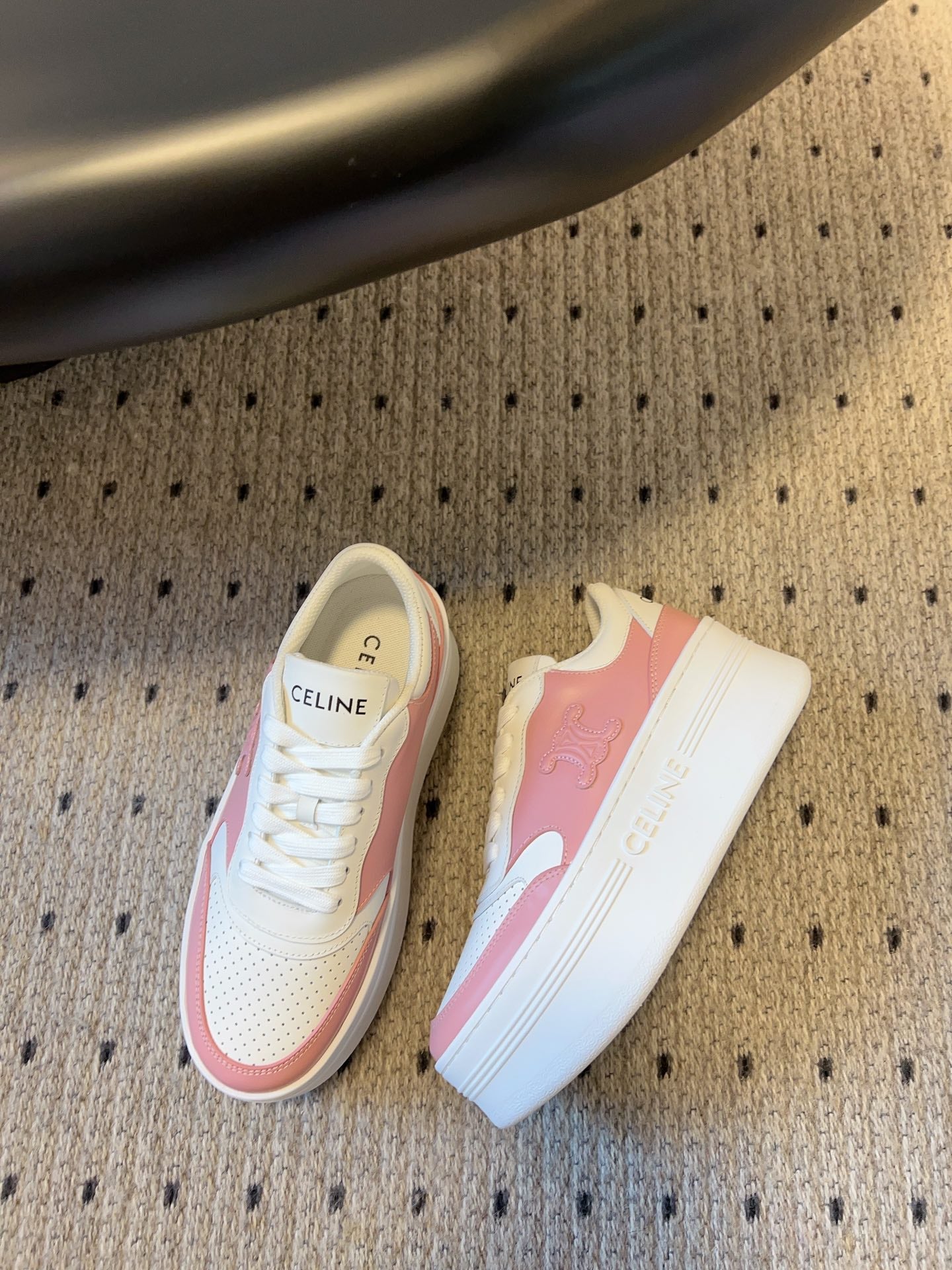 BLOCK SNEAKER WITH TRIOMPHE IN WHITE MIX BABY PINK CALFSKIN