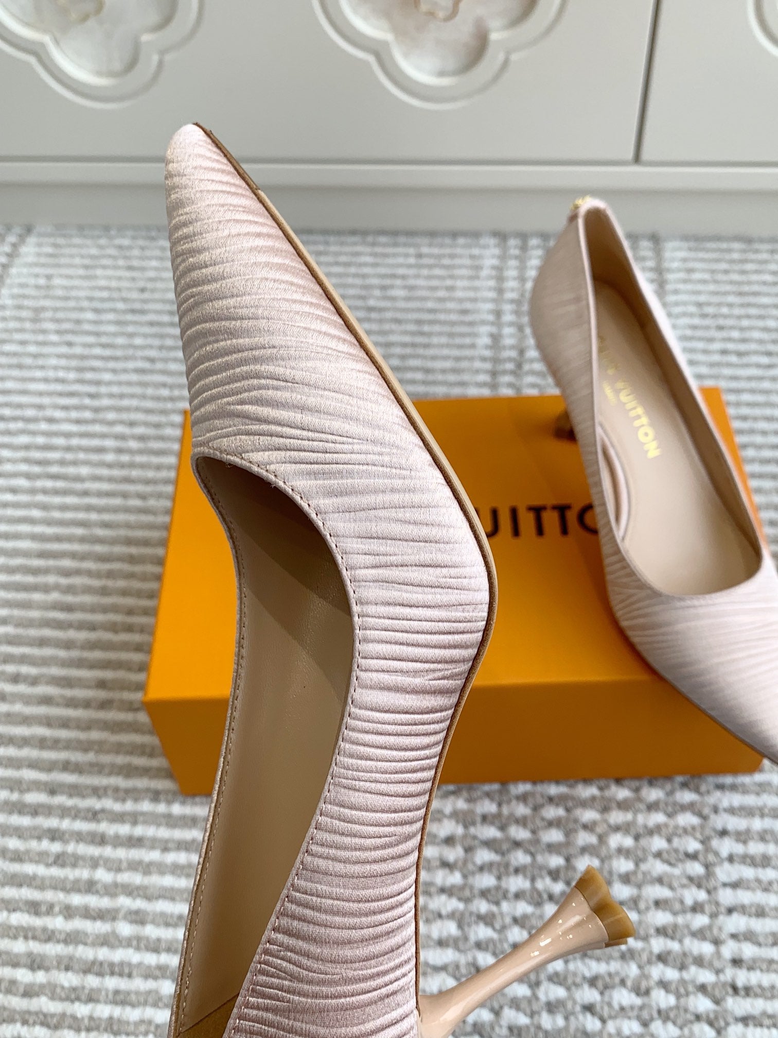 BLOSSOM PUMP 75 MM IN LIGHT PINK IMPORTED STRIPED SILK SATIN