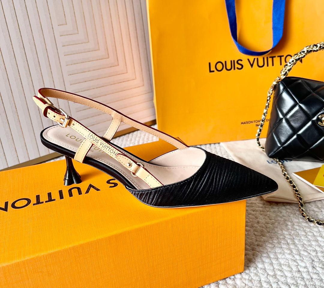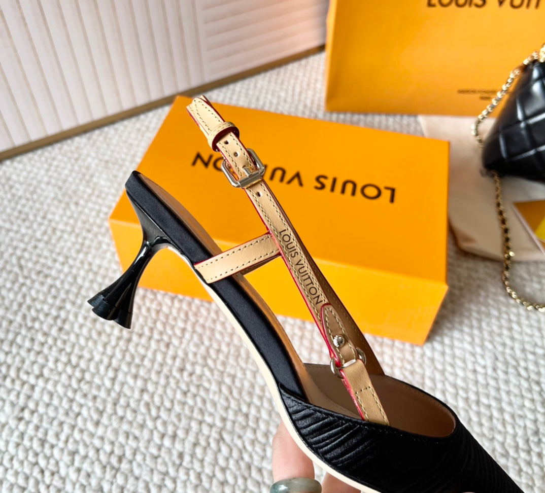 BLOSSOM PUMP SLINGBACKS 55 MM IN BLACK IMPORTED STRIPED SILK SATIN