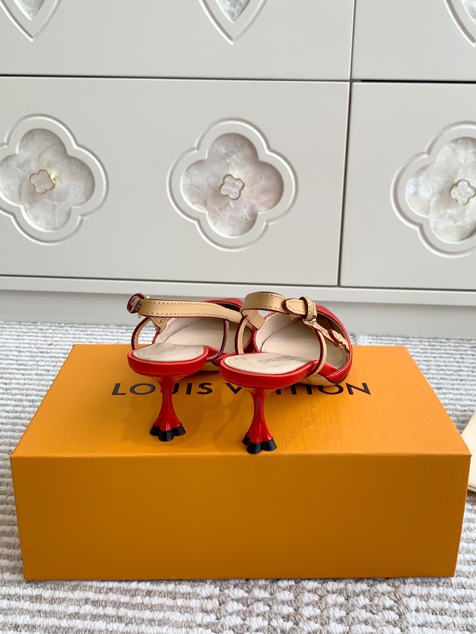 BLOSSOM SLINGBACKS 55 MM IN CHERRY RED IMPORTED STRIPED SILK SATIN