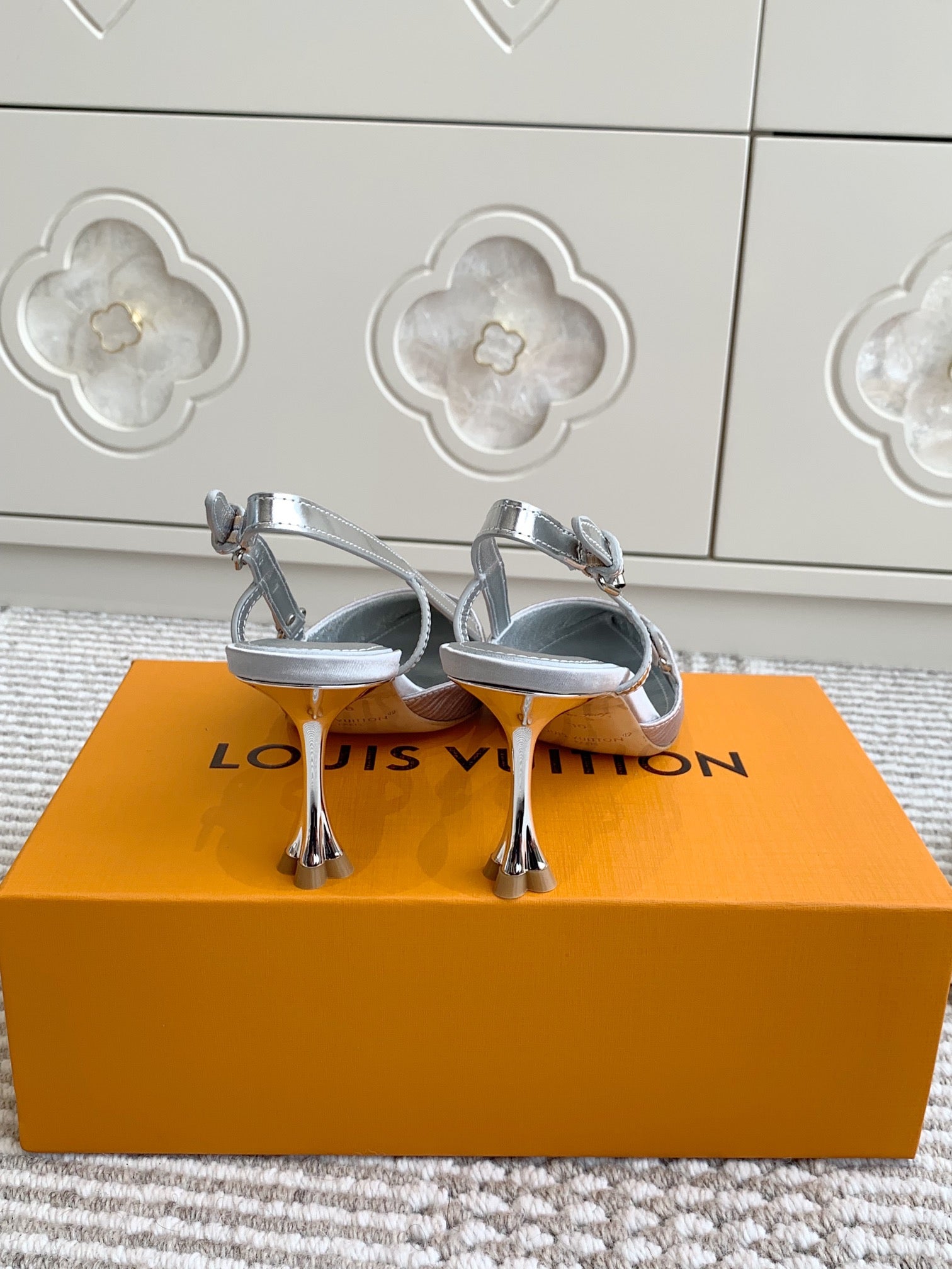 BLOSSOM SLINGBACKS 75 MM IN SILVER IMPORTED STRIPED SILK SATIN