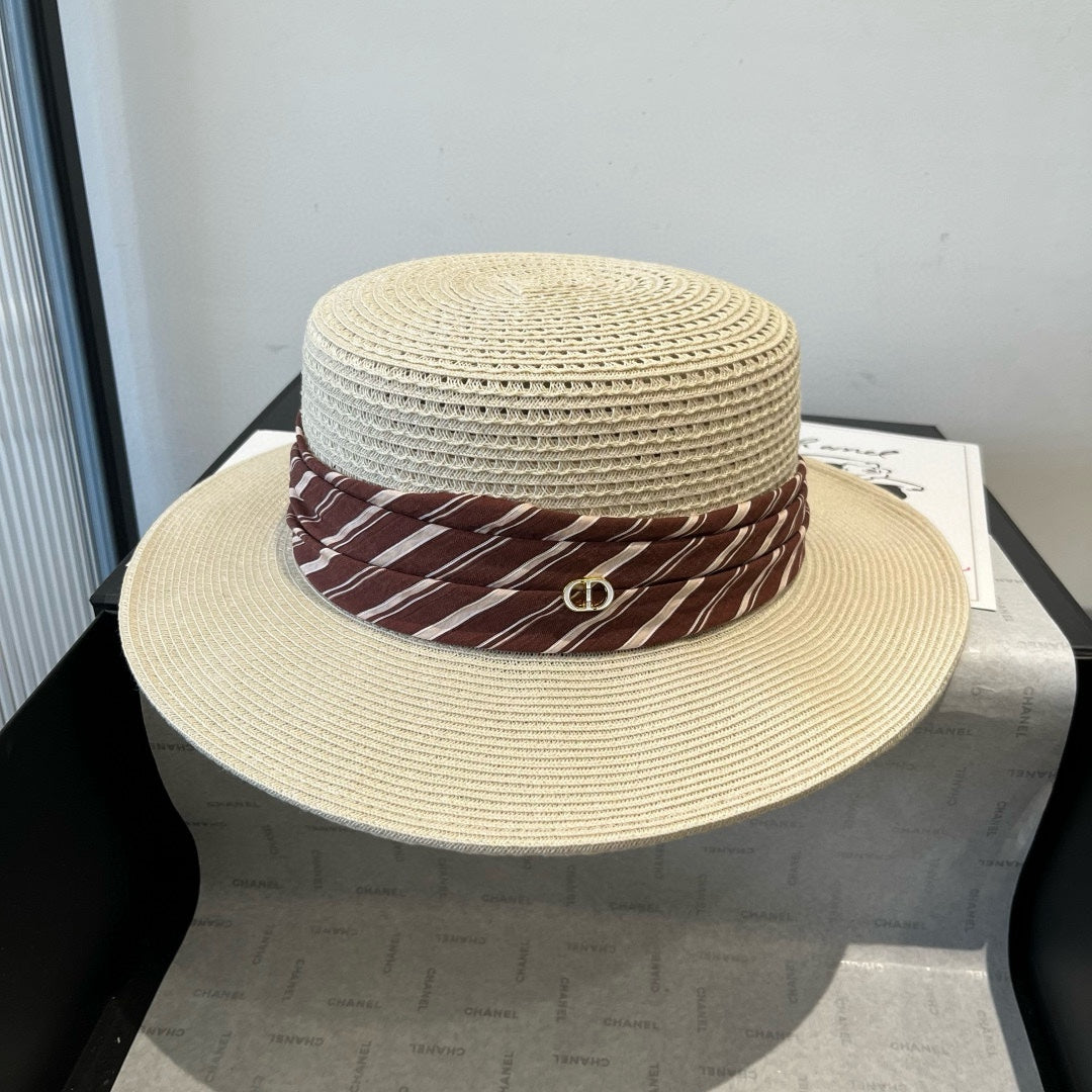 BOATER HAT IN LIGHT BEIGE RAFFIA