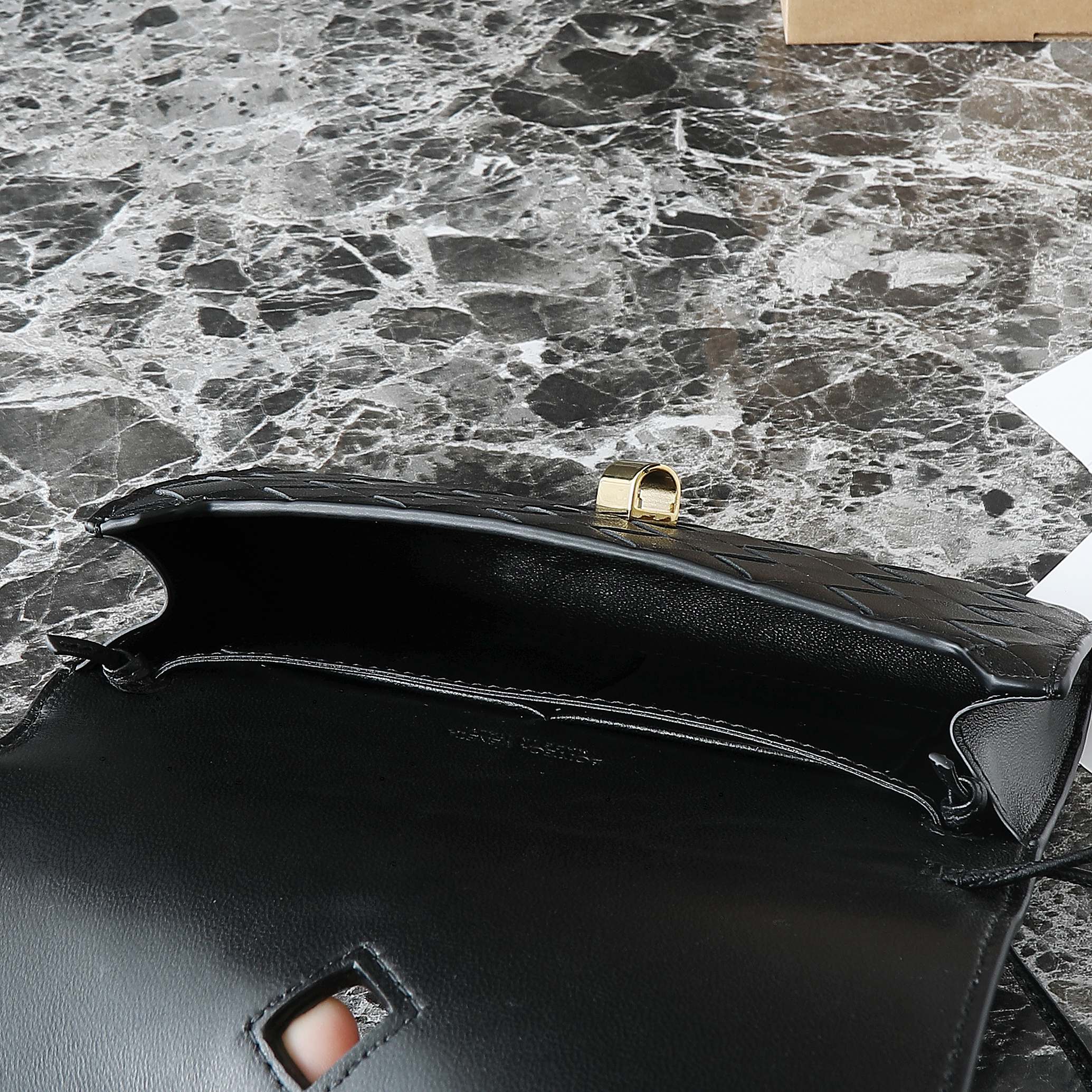 BOTTEGA VENETA 25S ANDIAMO POUCH 19 IN BLACK CALFSKIN GOLD HARDWARE