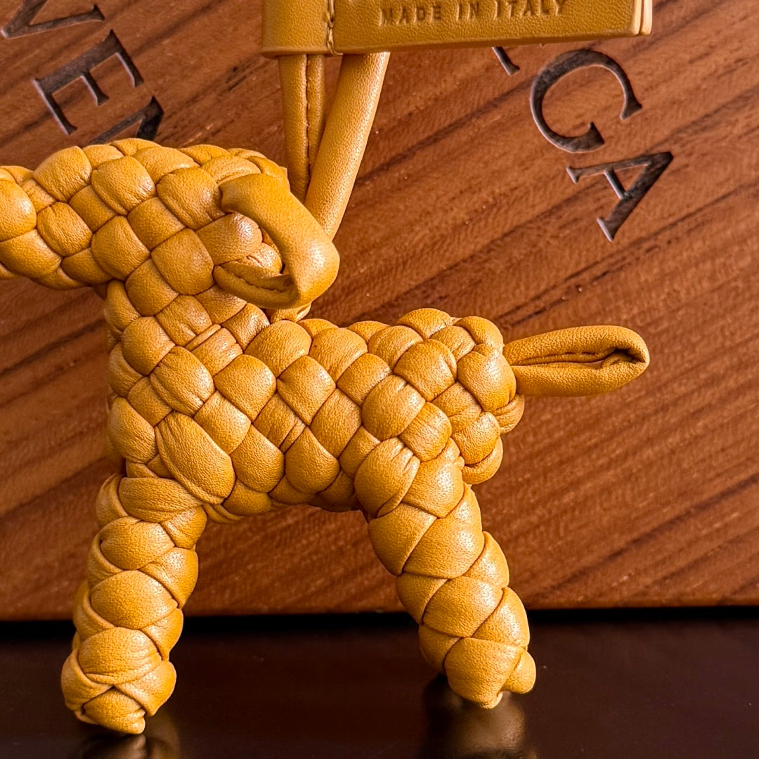 BOTTEGA VENETA 25S DOG CHARM IN BURNT ORANGE CALFSKIN
