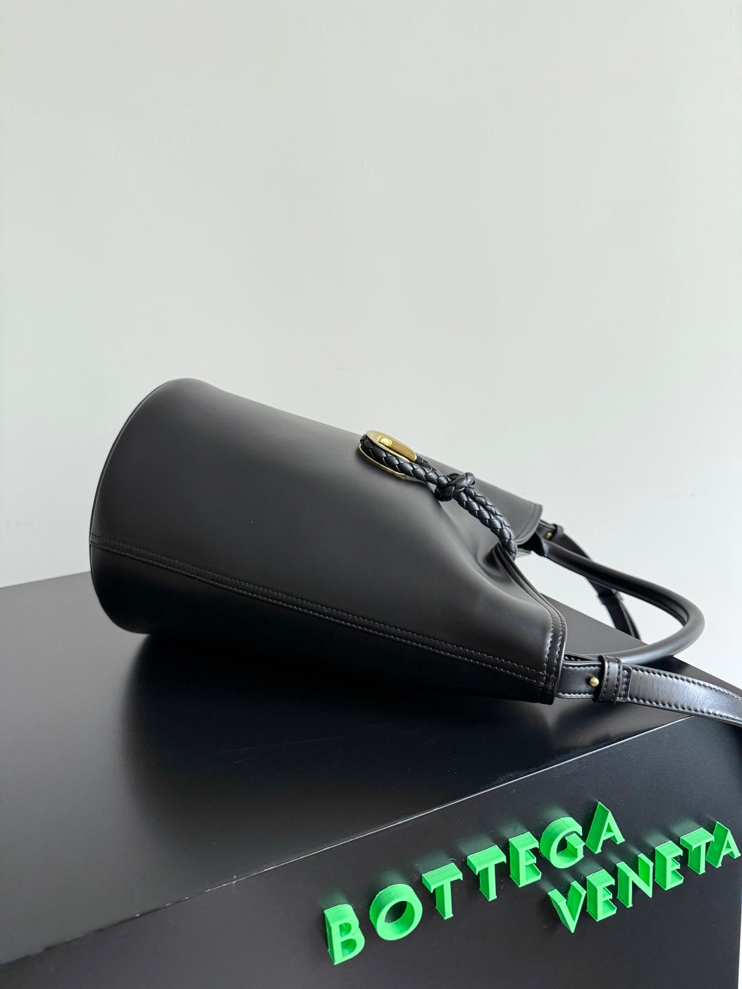 BOTTEGA VENETA 25S MEDIUM LIBERTA 30 IN BLACK CALFSKIN GOLD HARDWARE