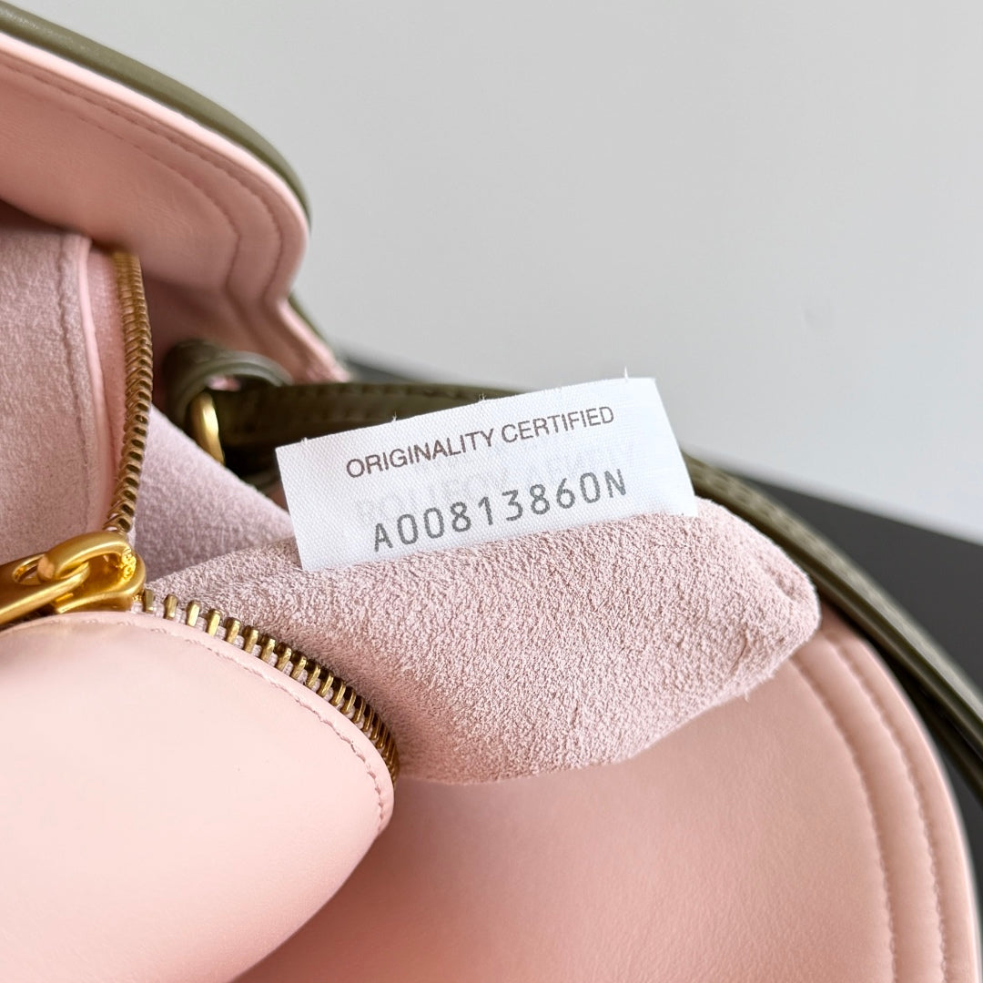 BOTTEGA VENETA 25S MEDIUM LIBERTA BAG 27 IN OLIVE GREEN CALFSKIN GOLD HARDWARE