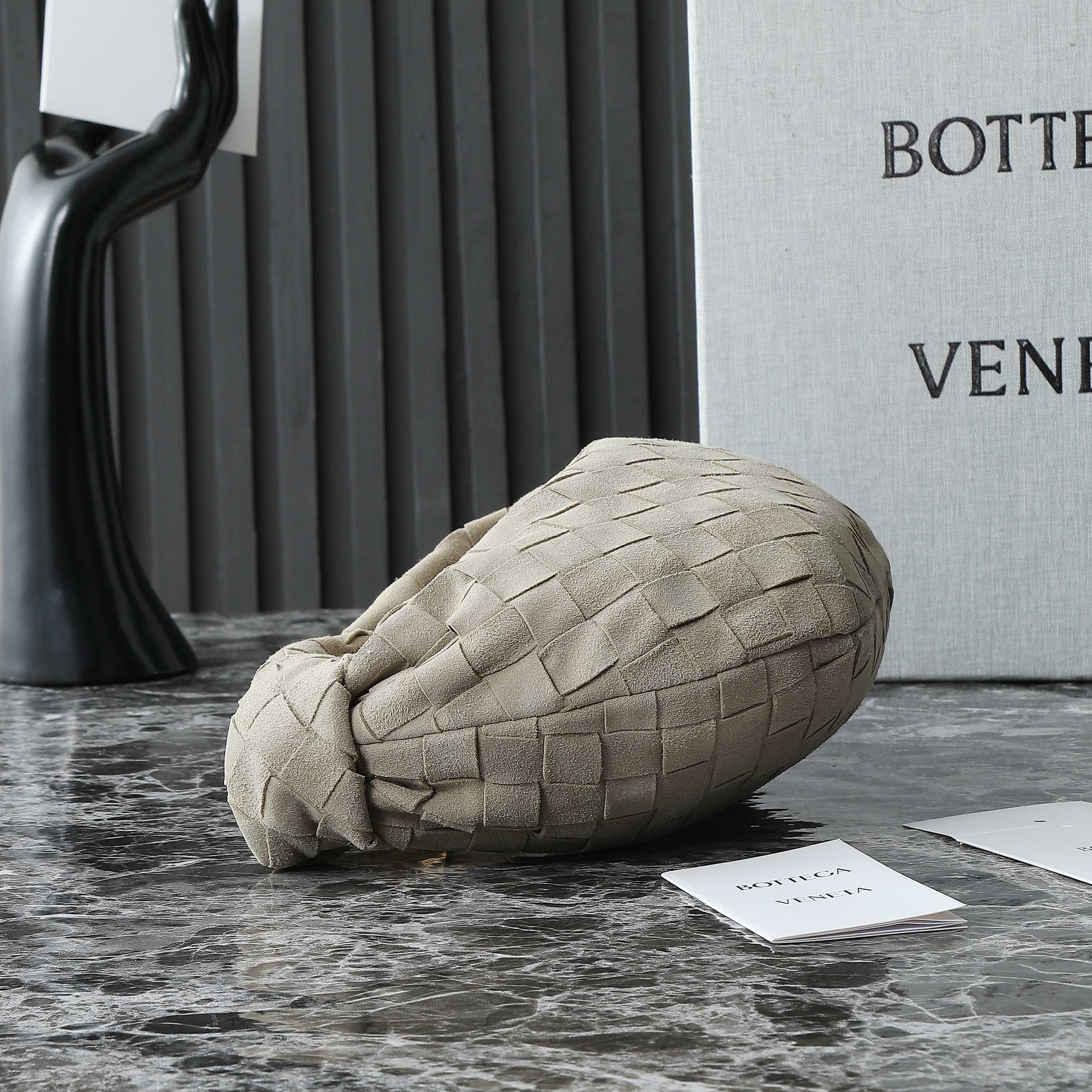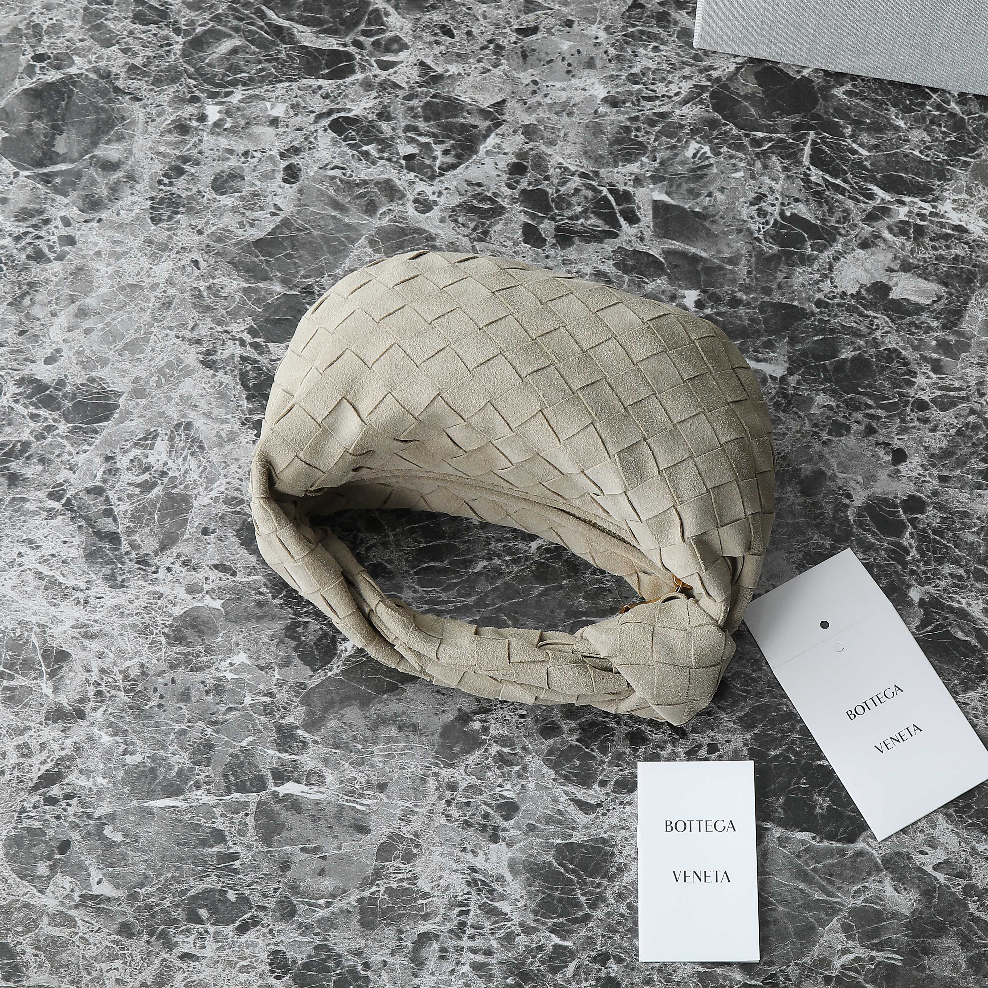 BOTTEGA VENETA 25S MINI JODIE 28 IN MUTED TAUPE SUEDE GOLD HARDWARE