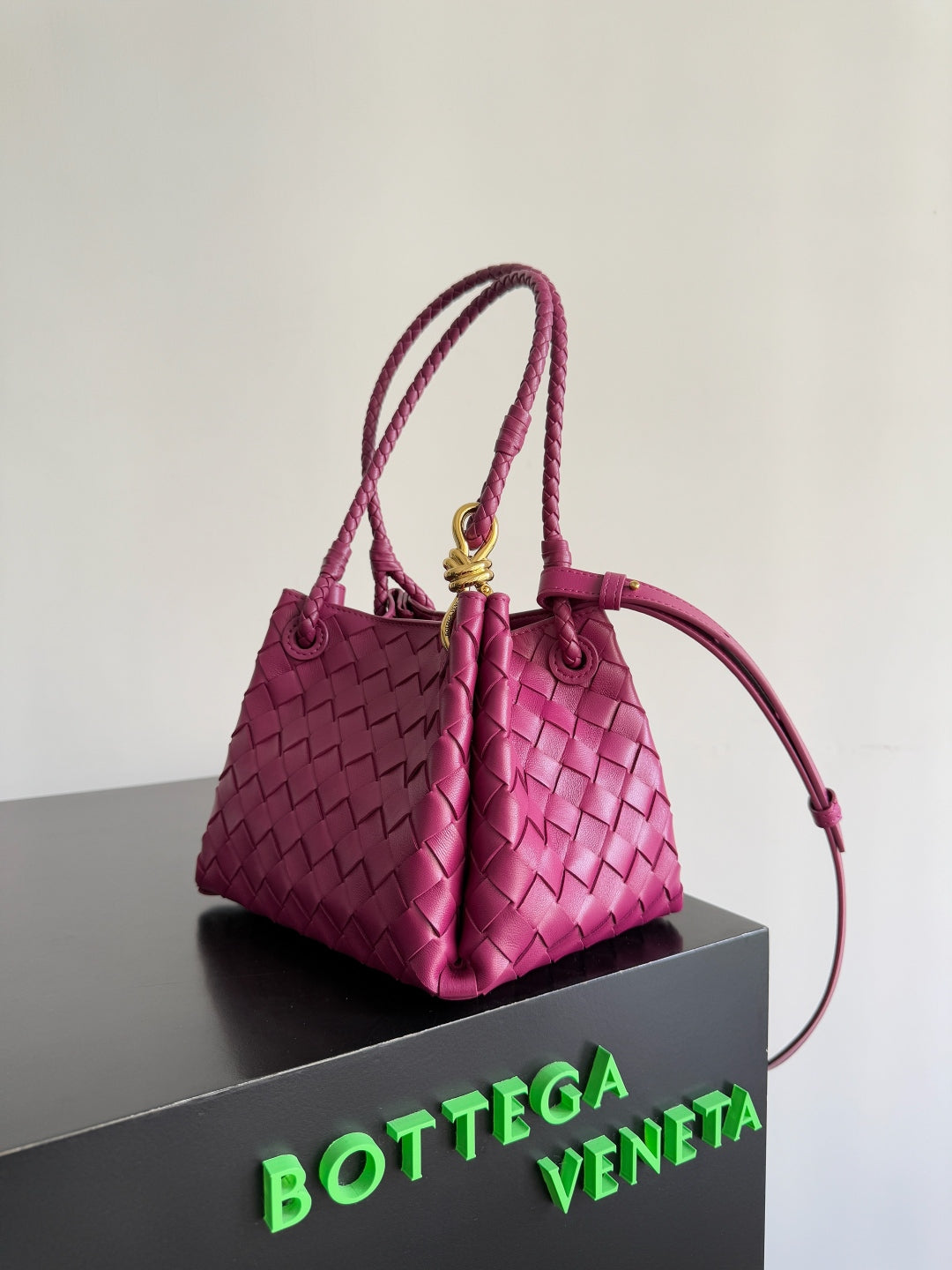 BOTTEGA VENETA 25S SMALL PARACHUTE 21 IN RASPBERRY PINK CALFSKIN GOLD HARDWARE