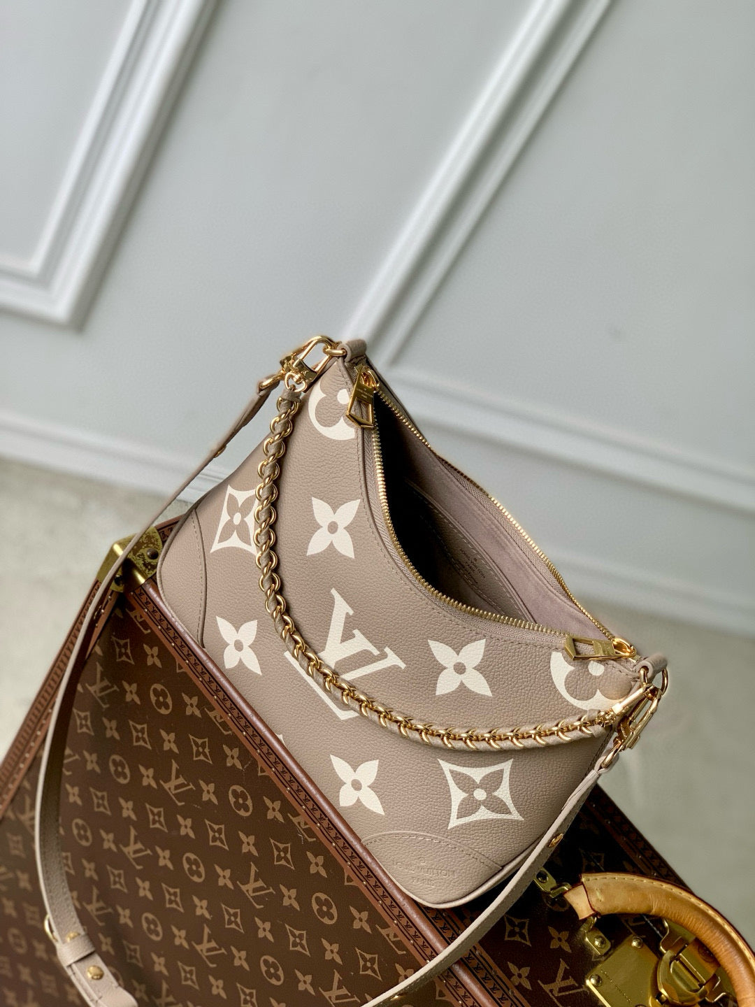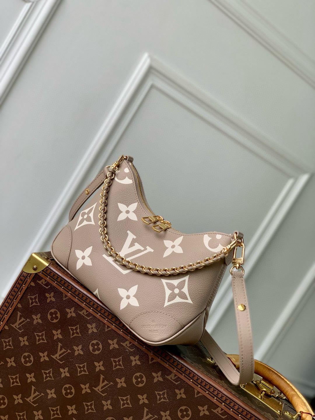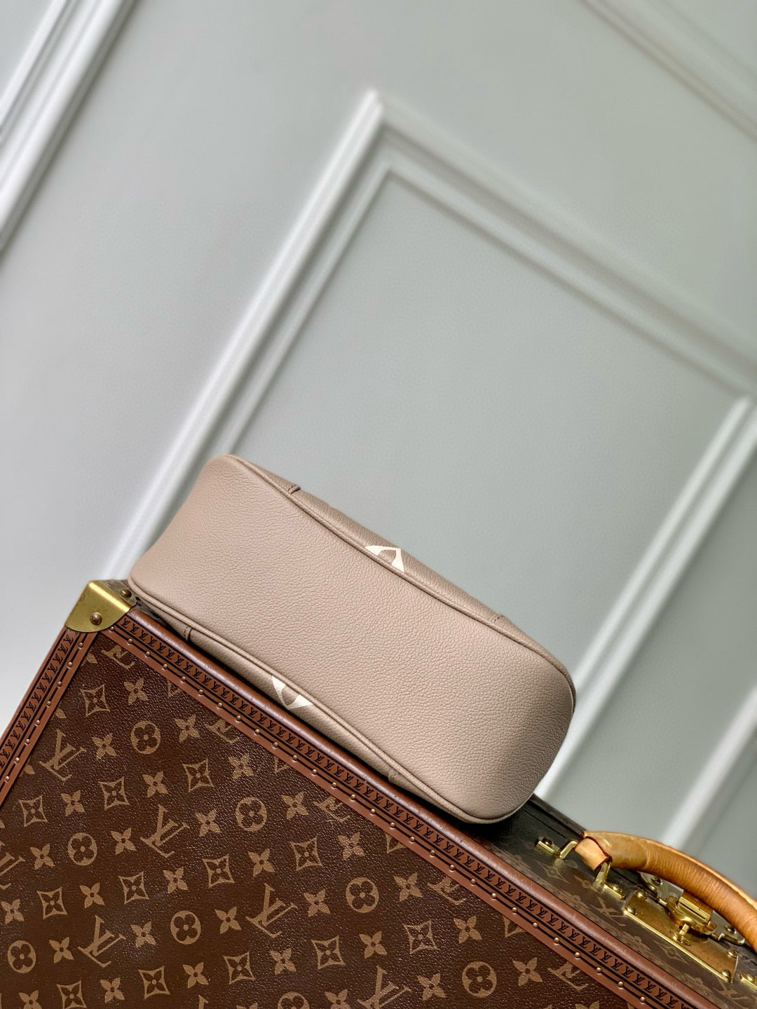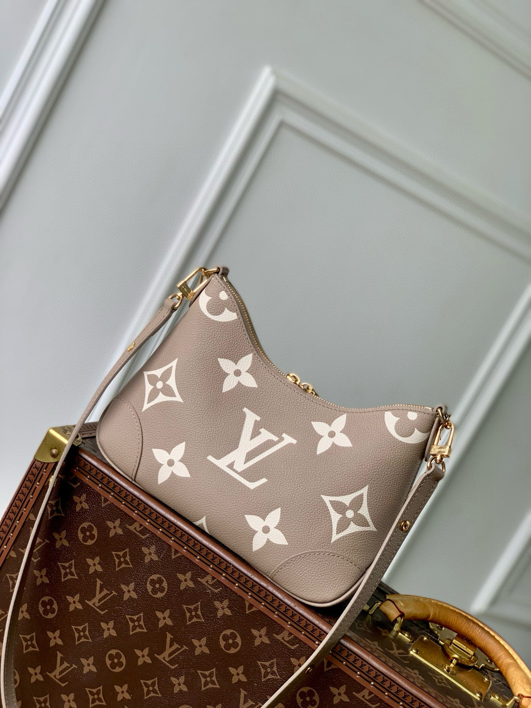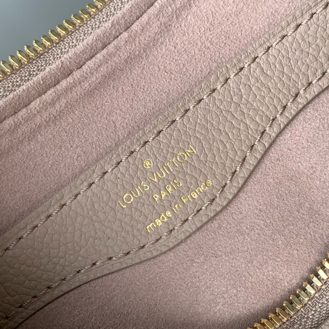 BOULOGNE 29 IN DOVE GRAY AND CREAM MONOGRAM EMPREINTE LEATHER GOLD HARDWARE