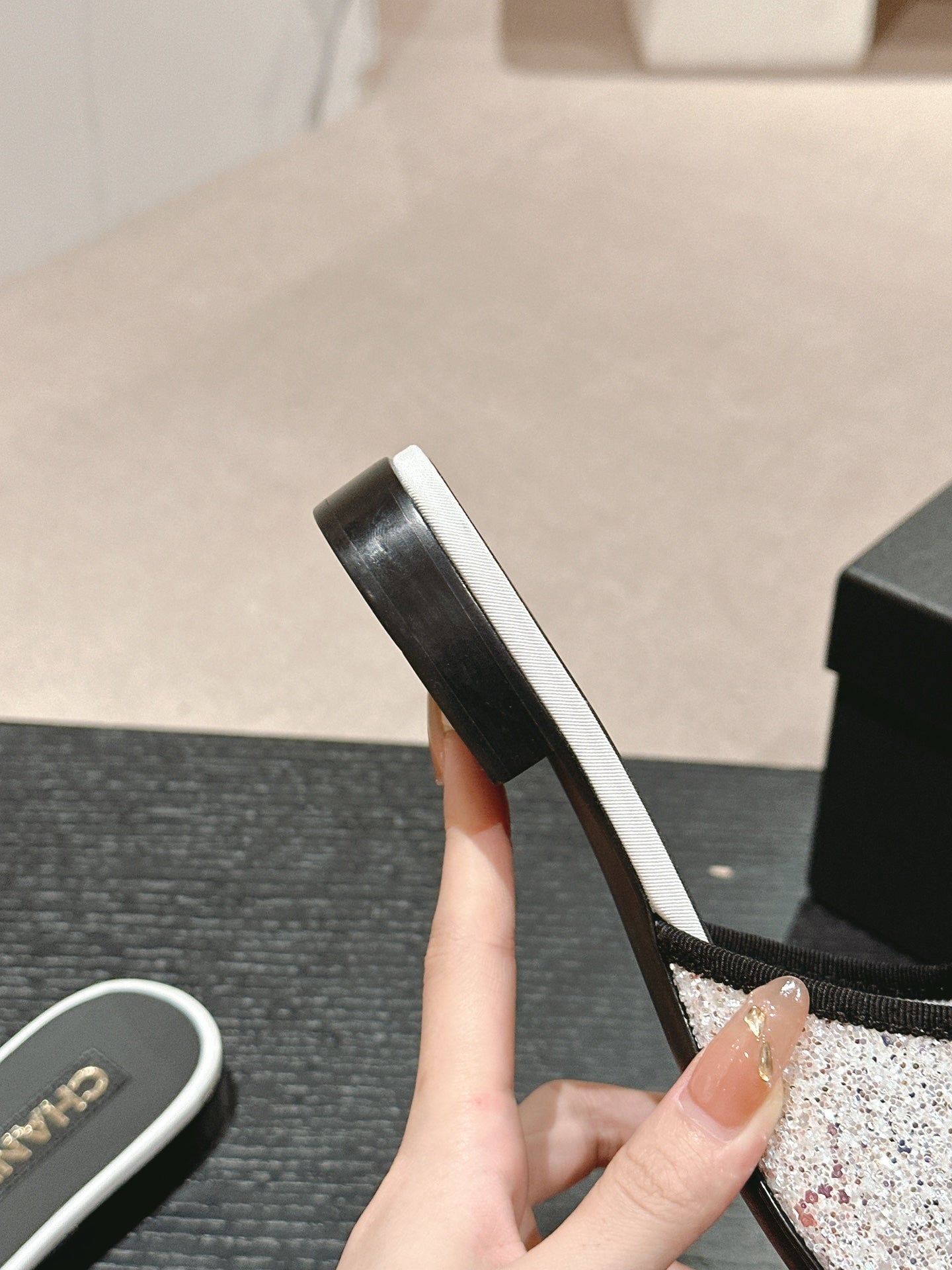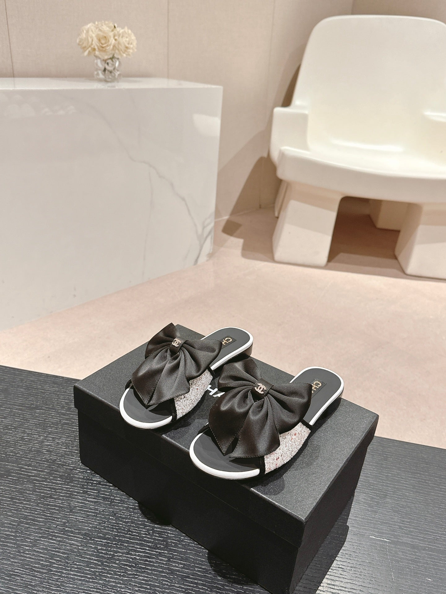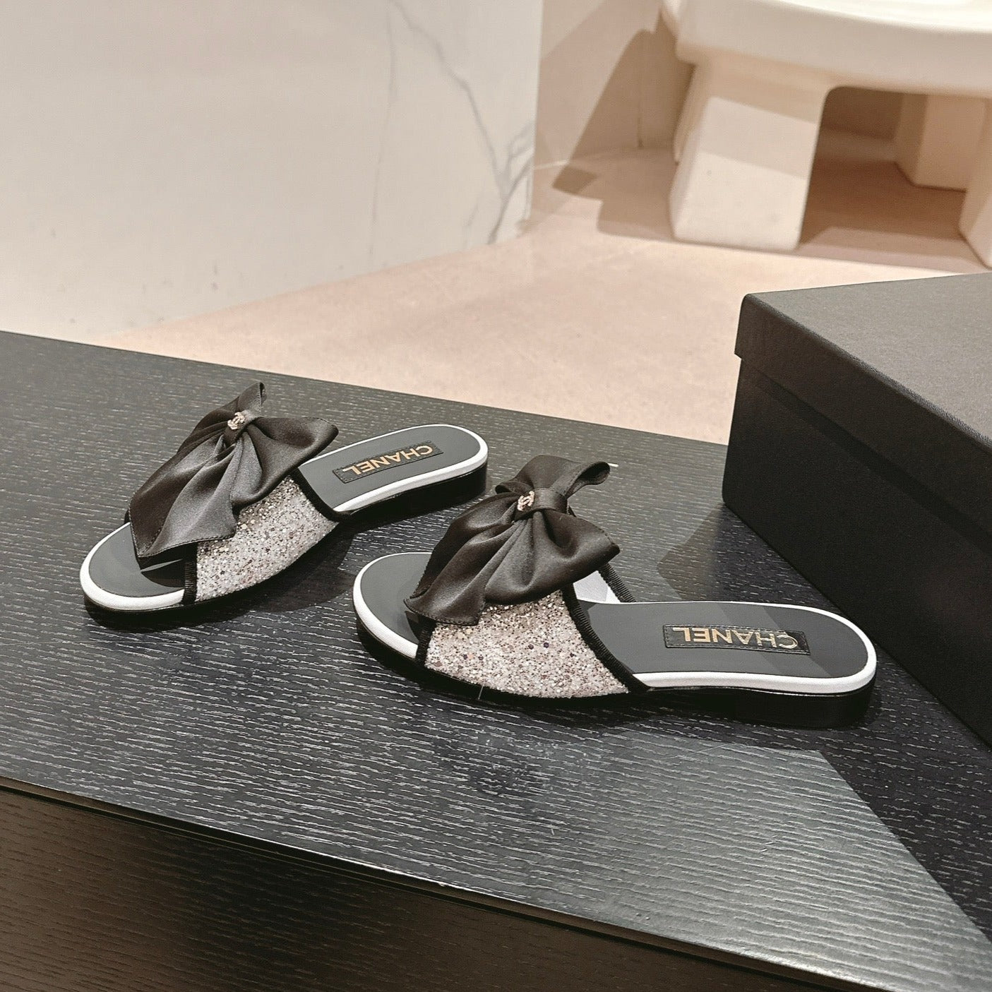 BOW LADY SLIPPERS BLACK LAMBSKIN WITH WHITE RHINESTONES