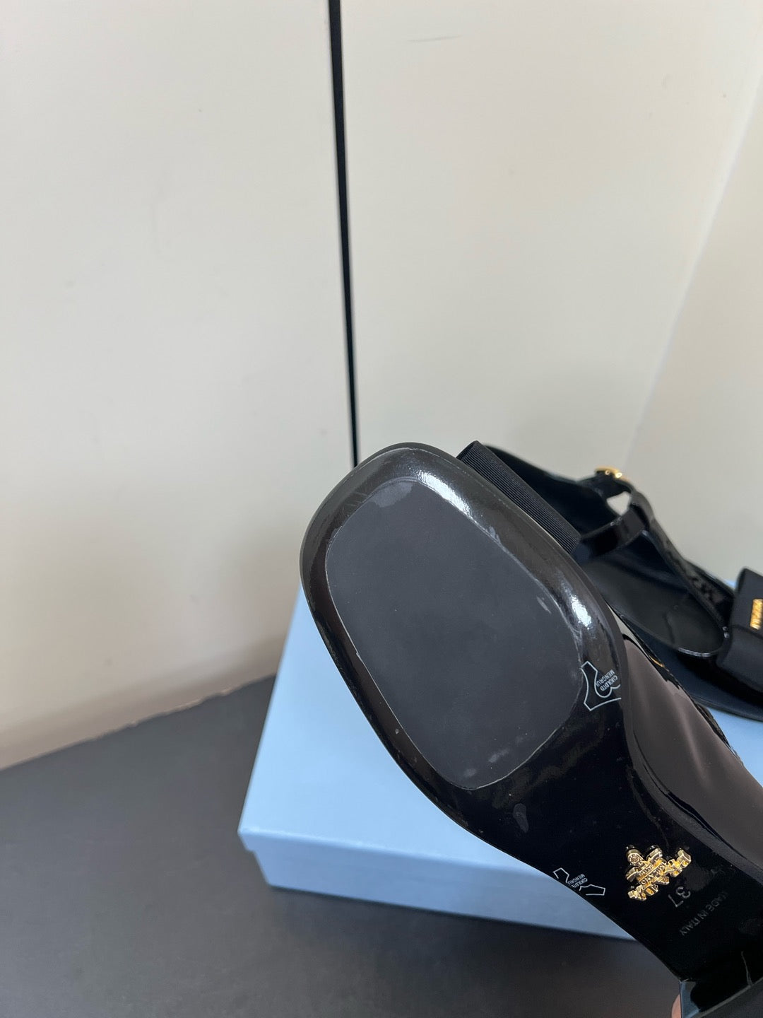BOW MARY JANE PUMPS WITH T-STRAP IN BLACK GLOSSY CALFSKIN