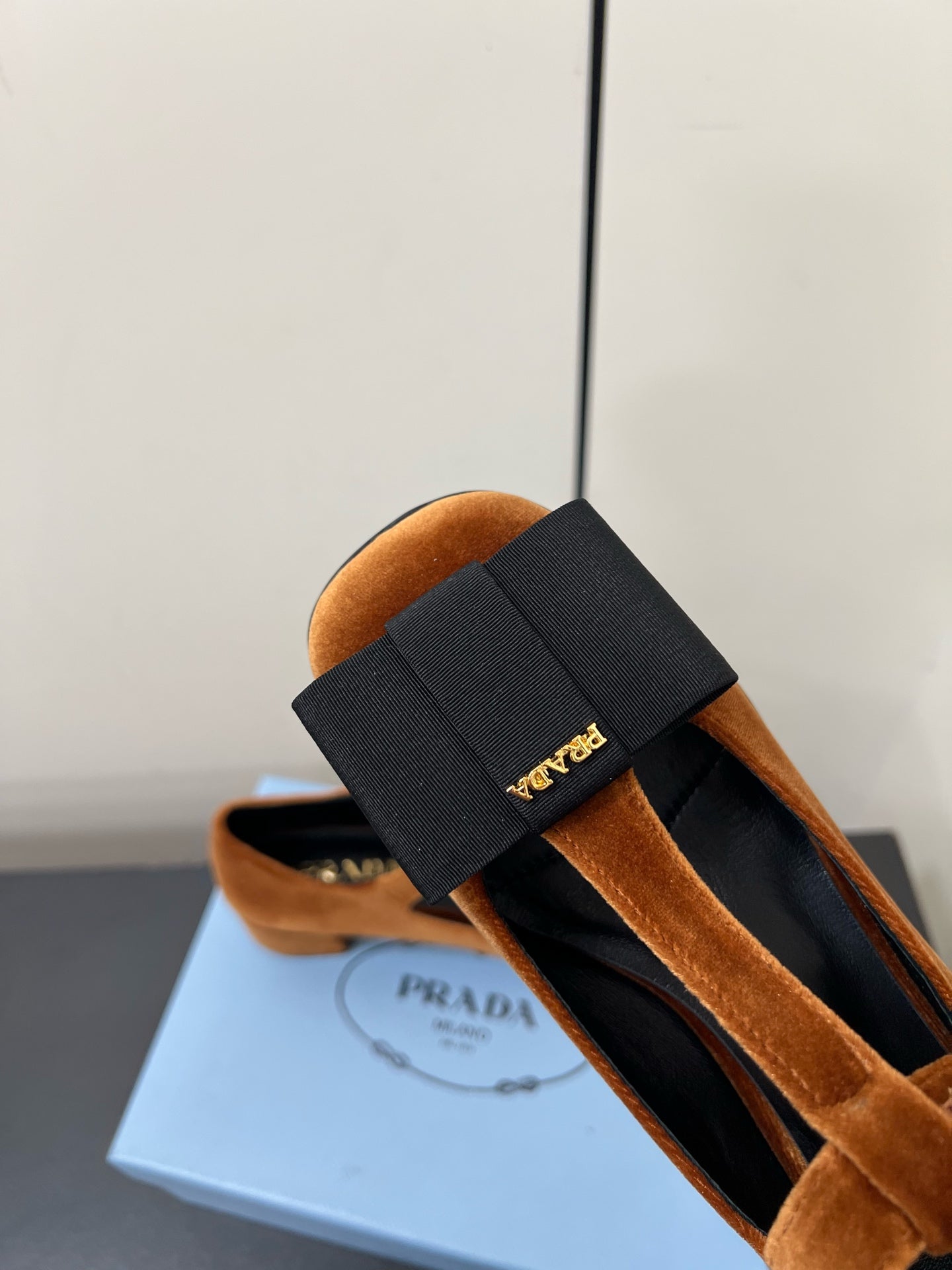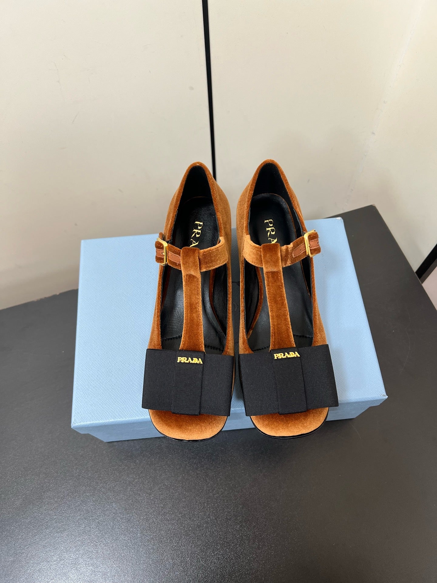 BOW MARY JANE PUMPS WITH T-STRAP IN BRONZE BROWN VELVET