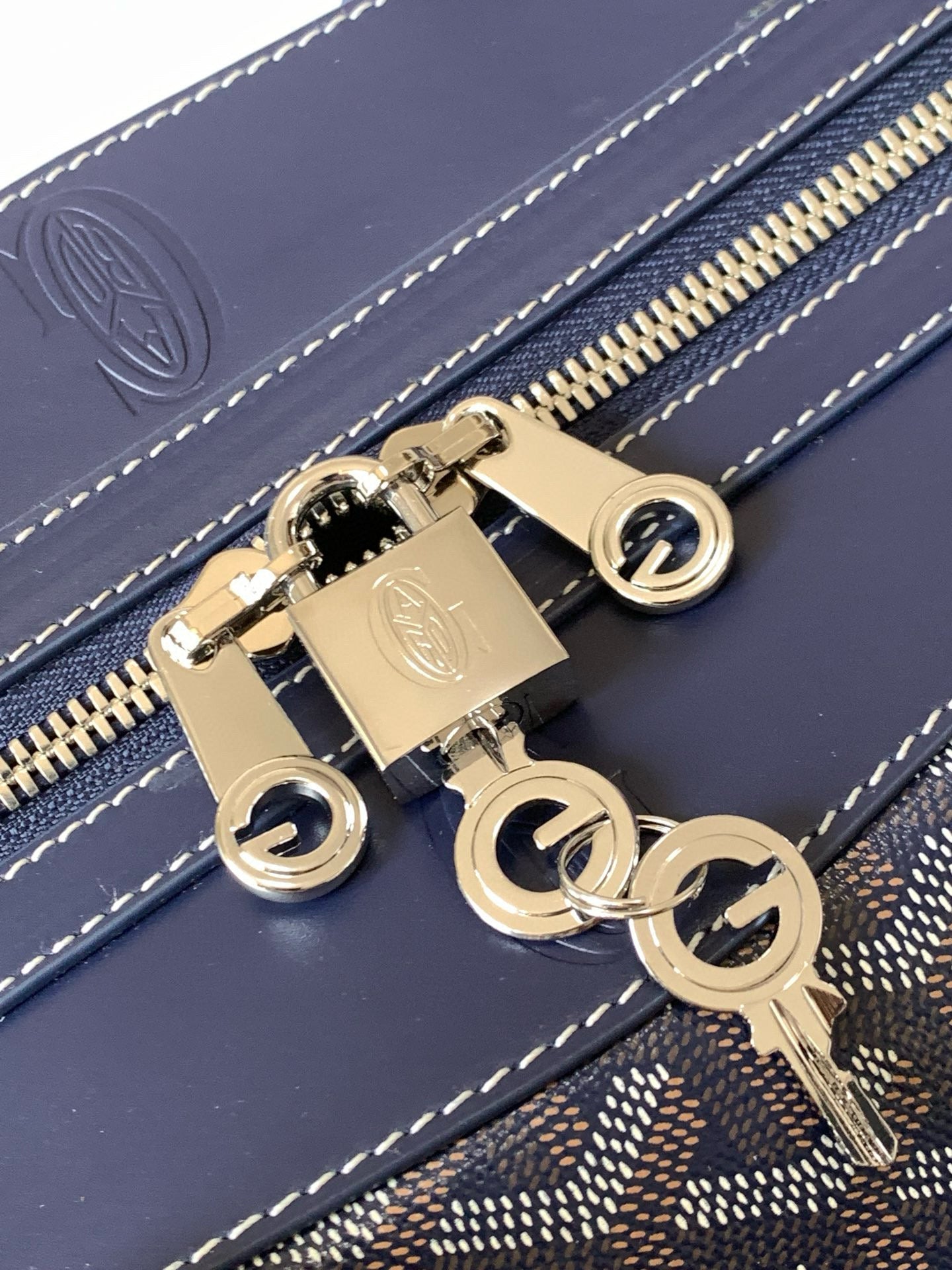 BOWLING 45 BAG IN NAVY BLUE GOYARDINE CANVAS AND CALFSKIN TRIM