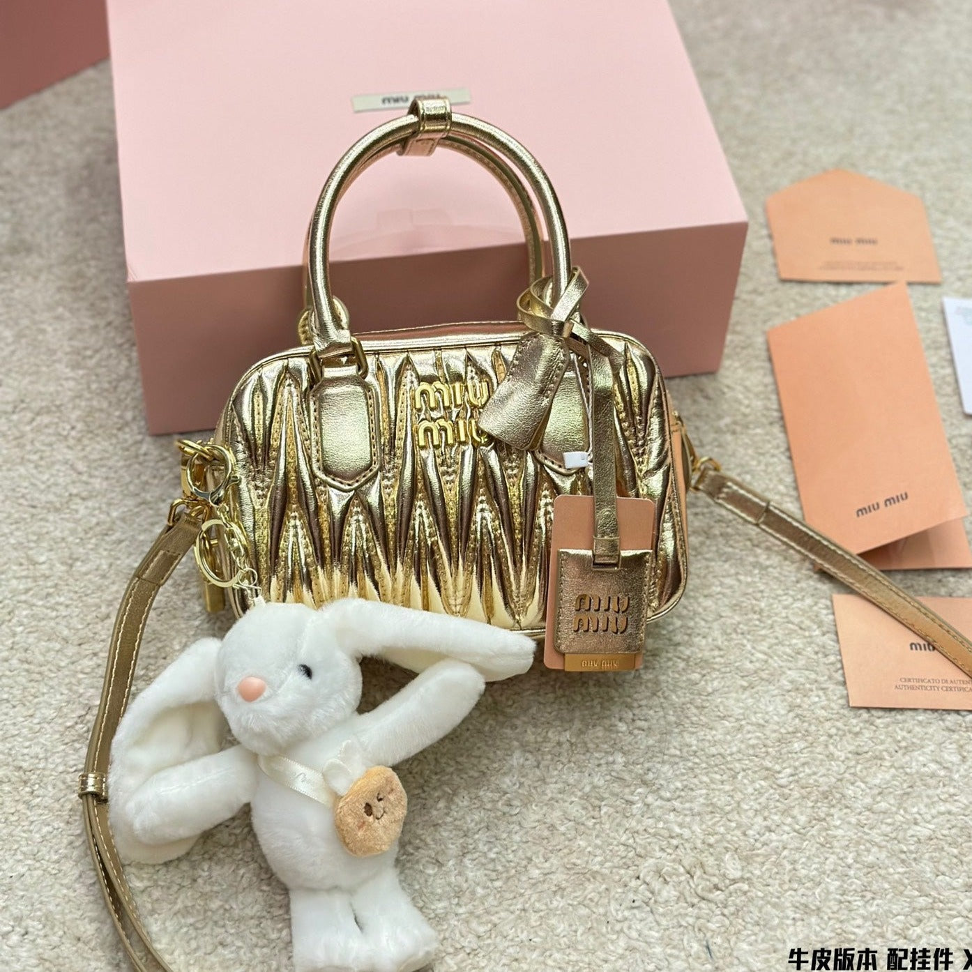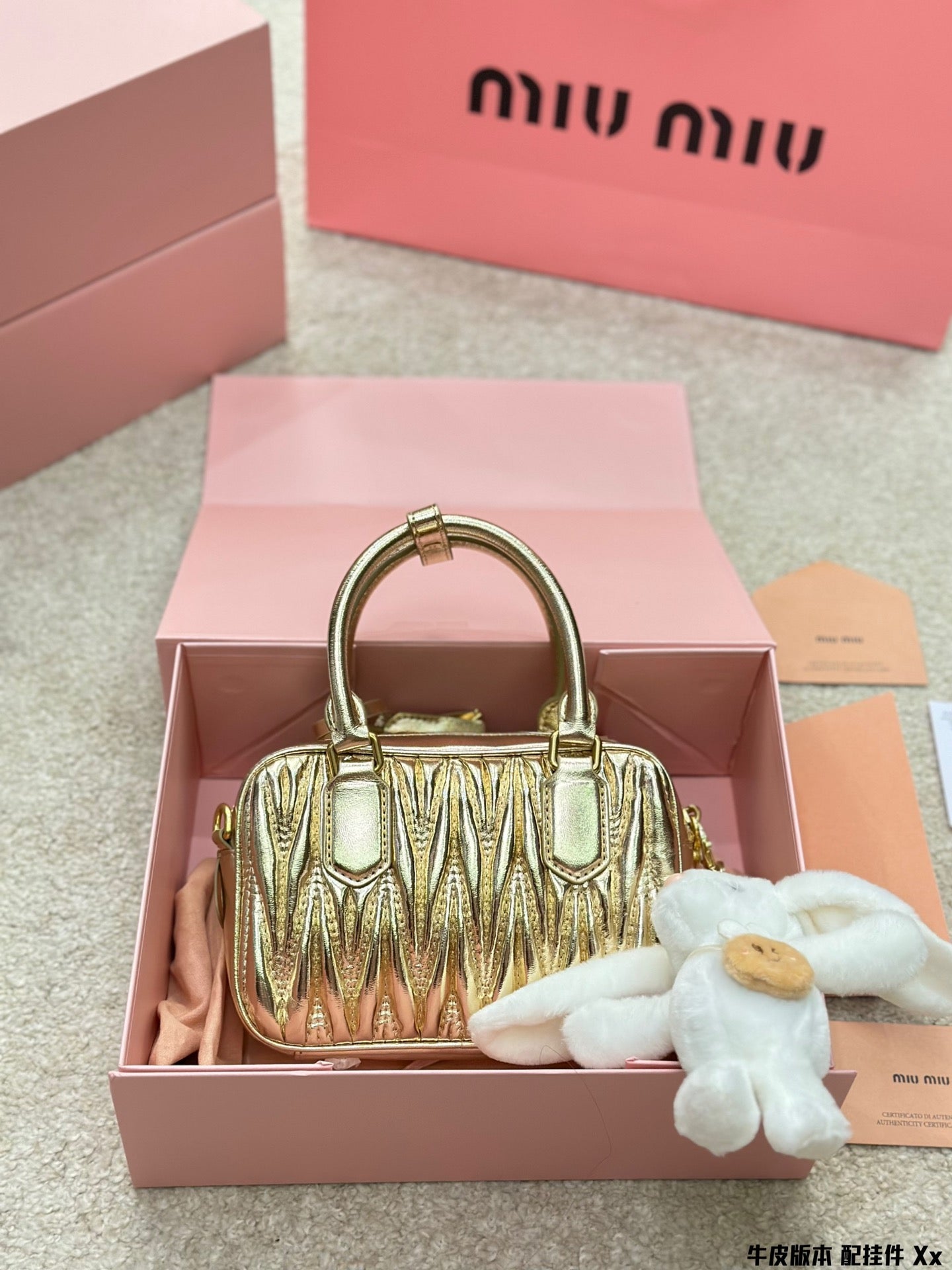 BOWLING BAG 21 IN GOLD LAMBSKIN