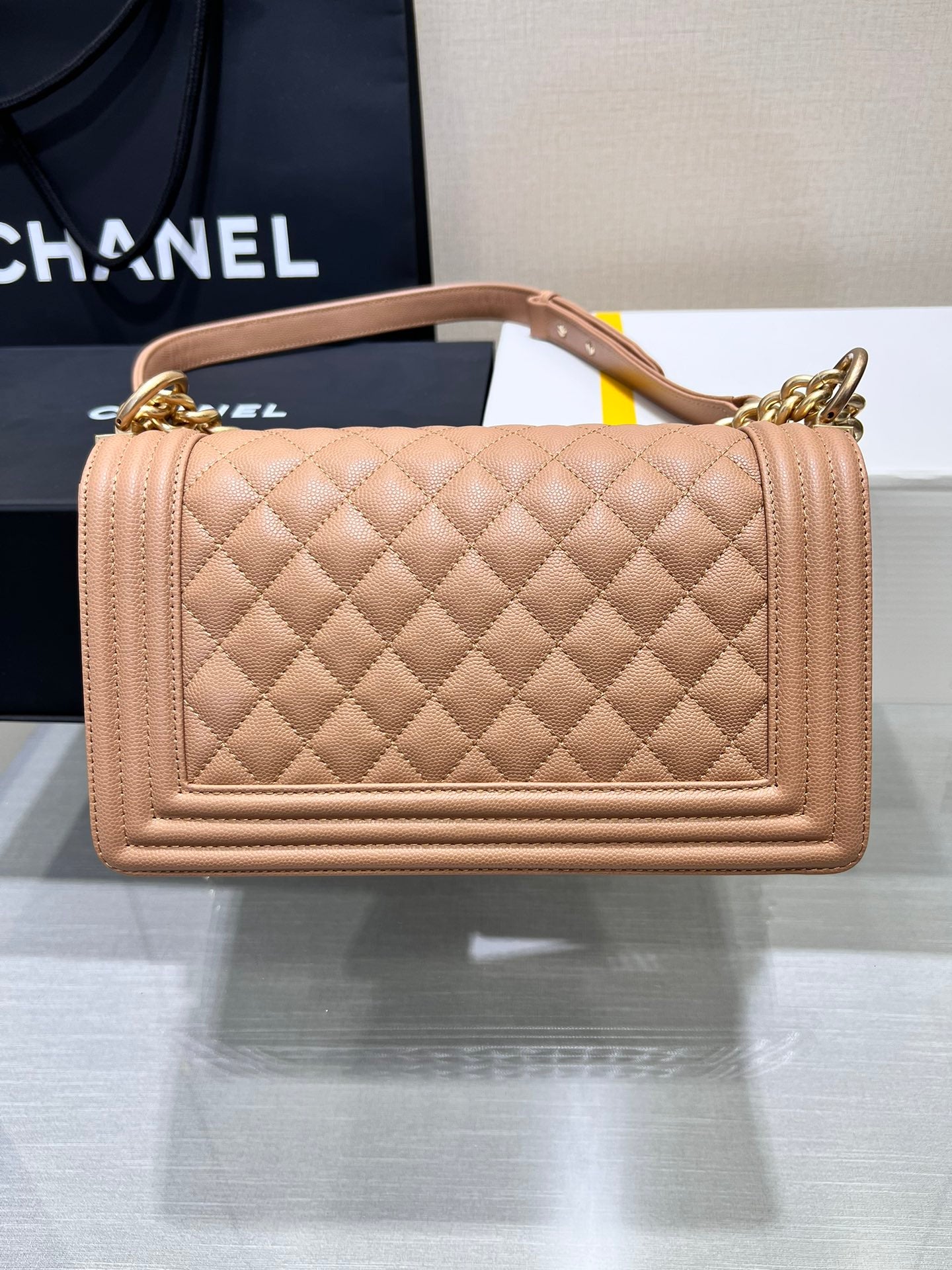 BOY BAG MEDIUM 25 BROWN CAVIAR GOLD HARDWARE