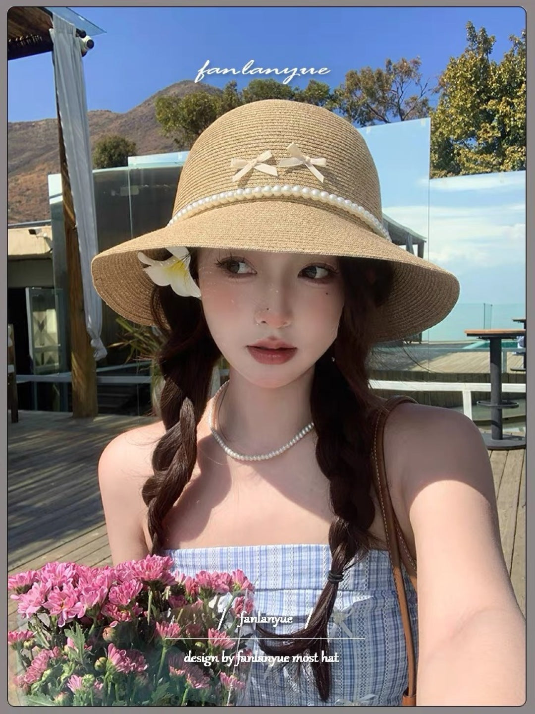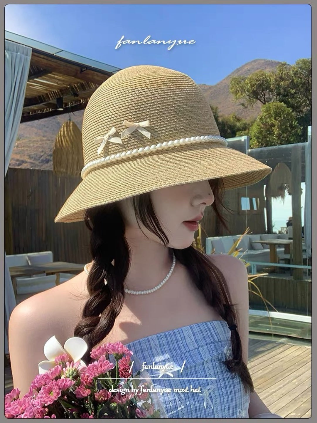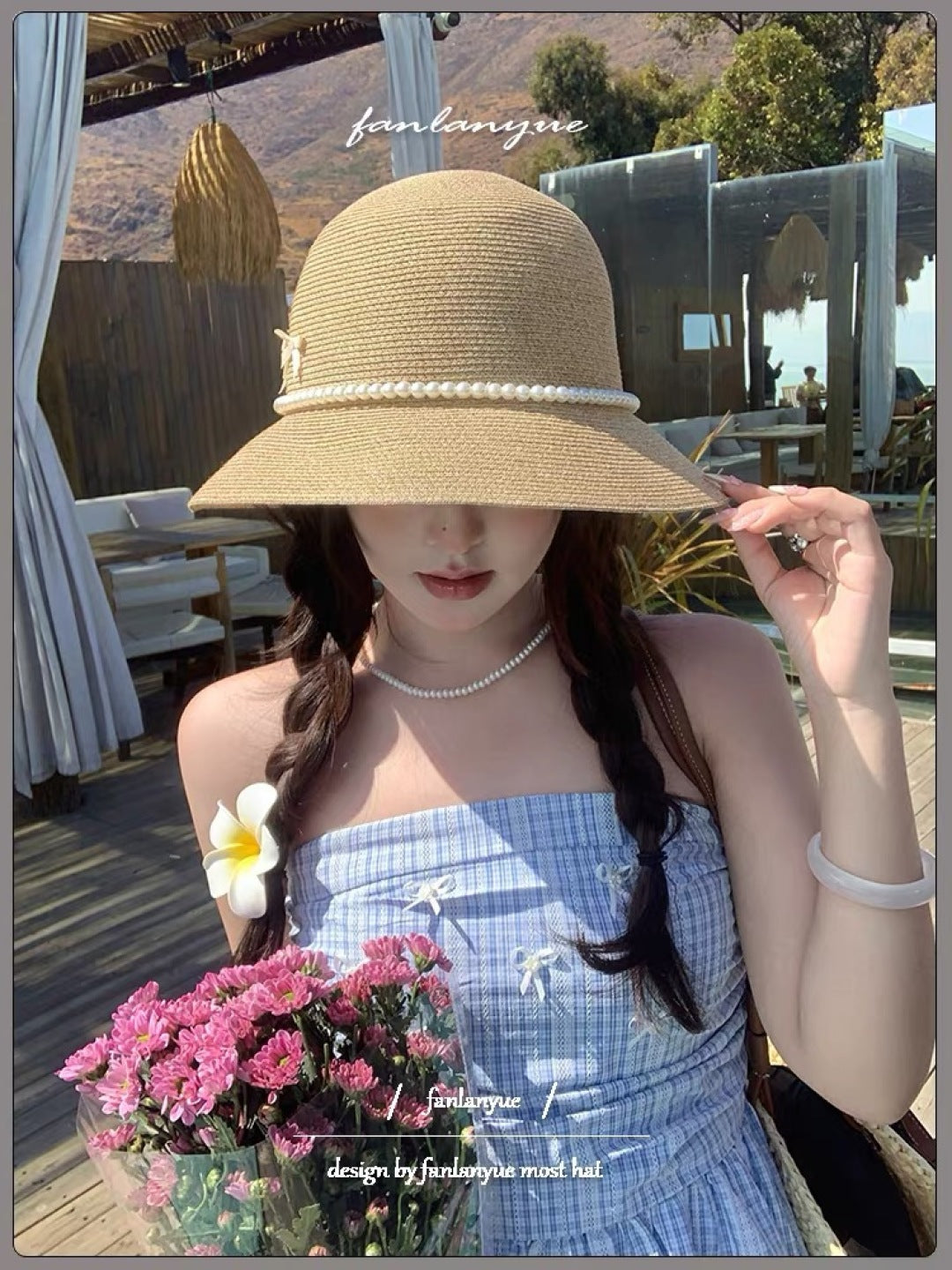 BUCKET HAT IN BEIGE RAFFIA MIX PEARL