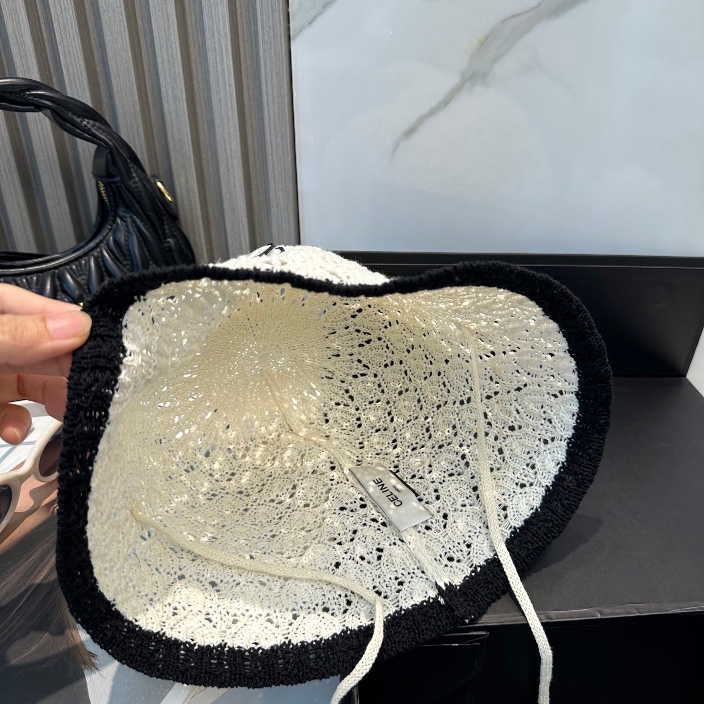 BUCKET HAT MODEL 652272 IN BLACK AND WHITE CROCHET