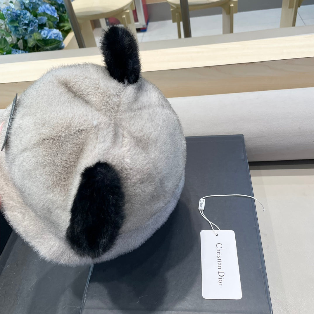 BUCKET HAT WITH CUTE BEAR EARS IN RHINO GRAY RABBIT FUR 434967