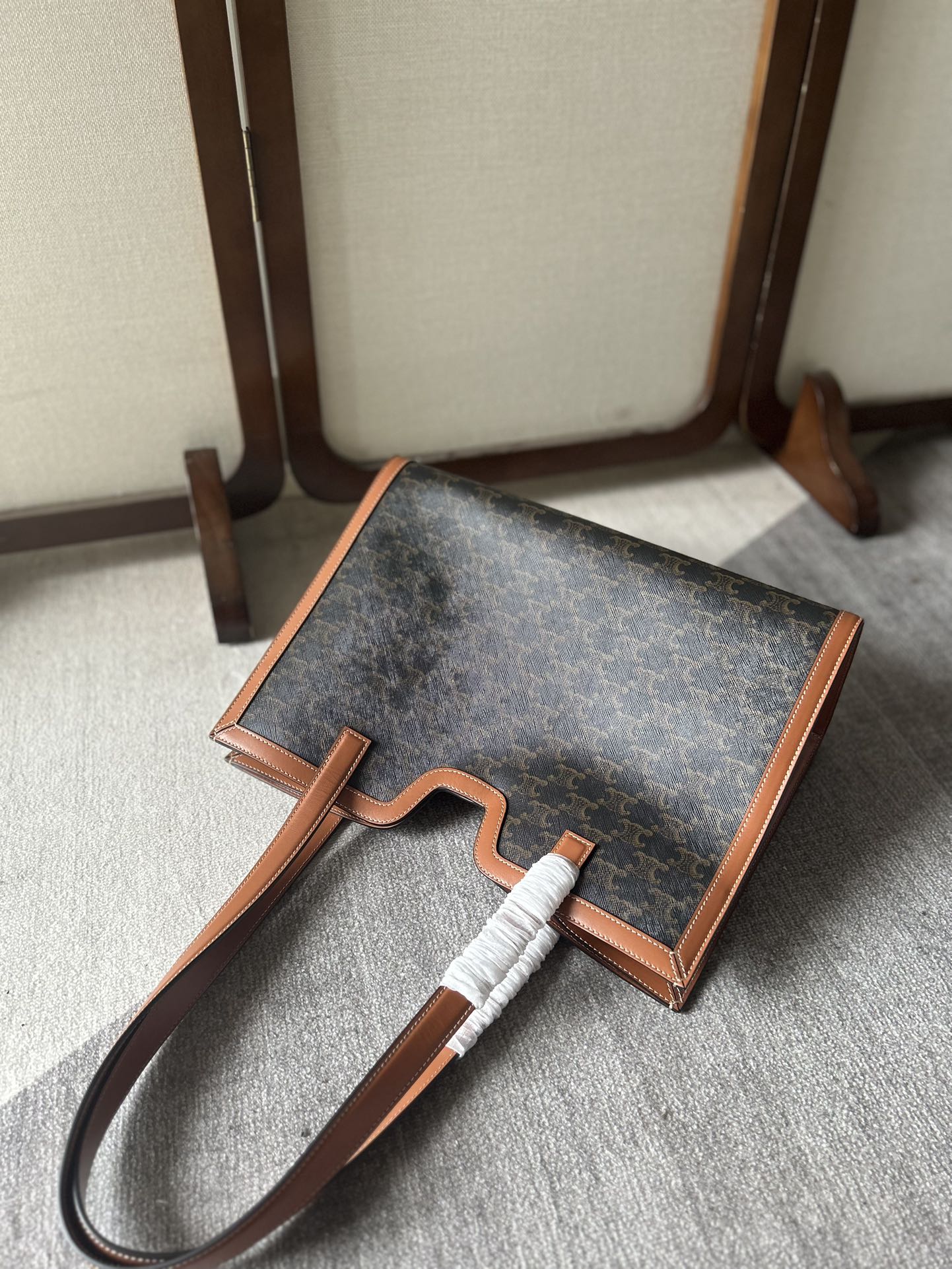 CABAS 37 IN BLACK TRIOMPHE CANVAS AND BRONZE BROWN CALFSKIN TRIM GOLD LOCK