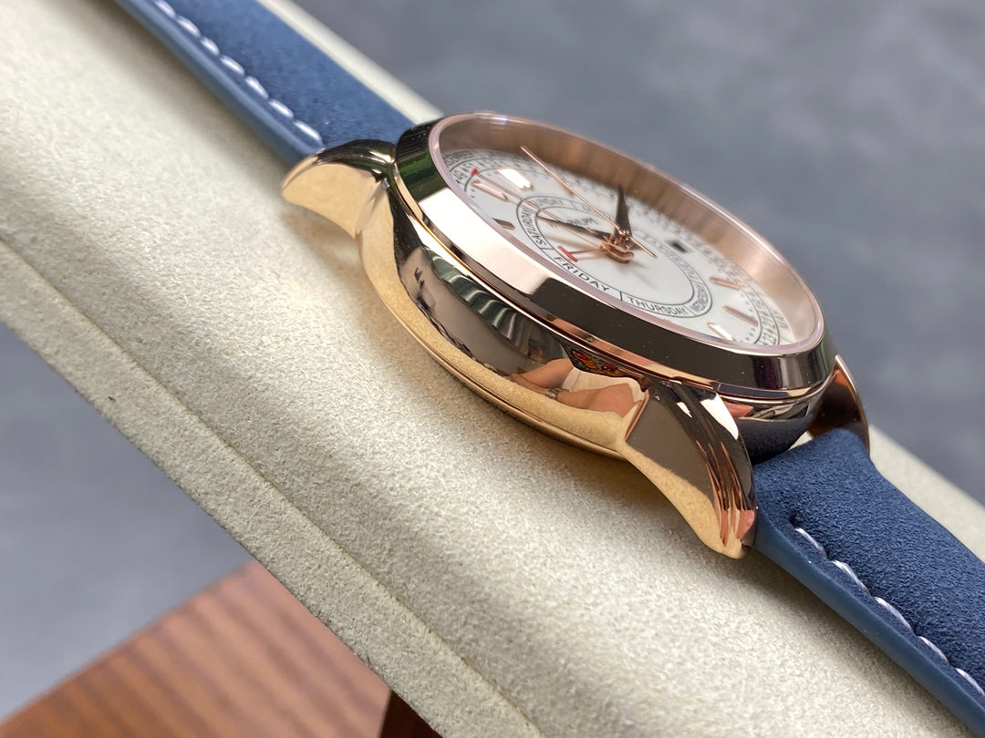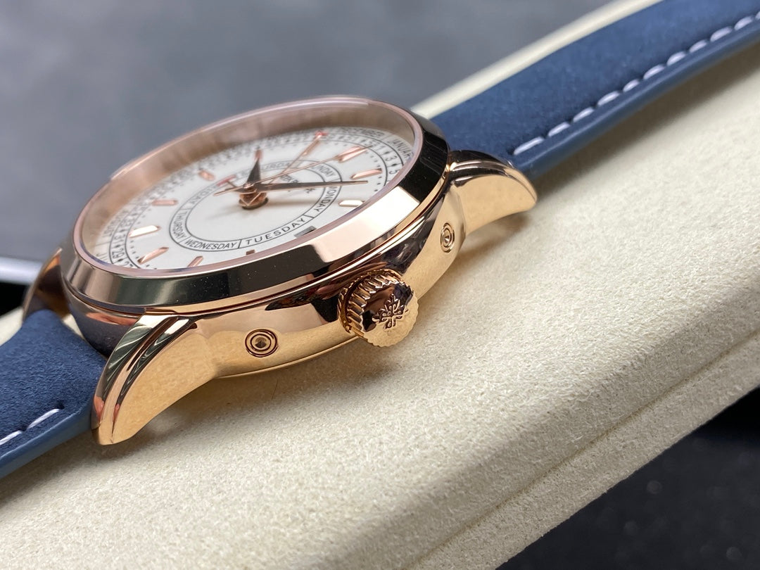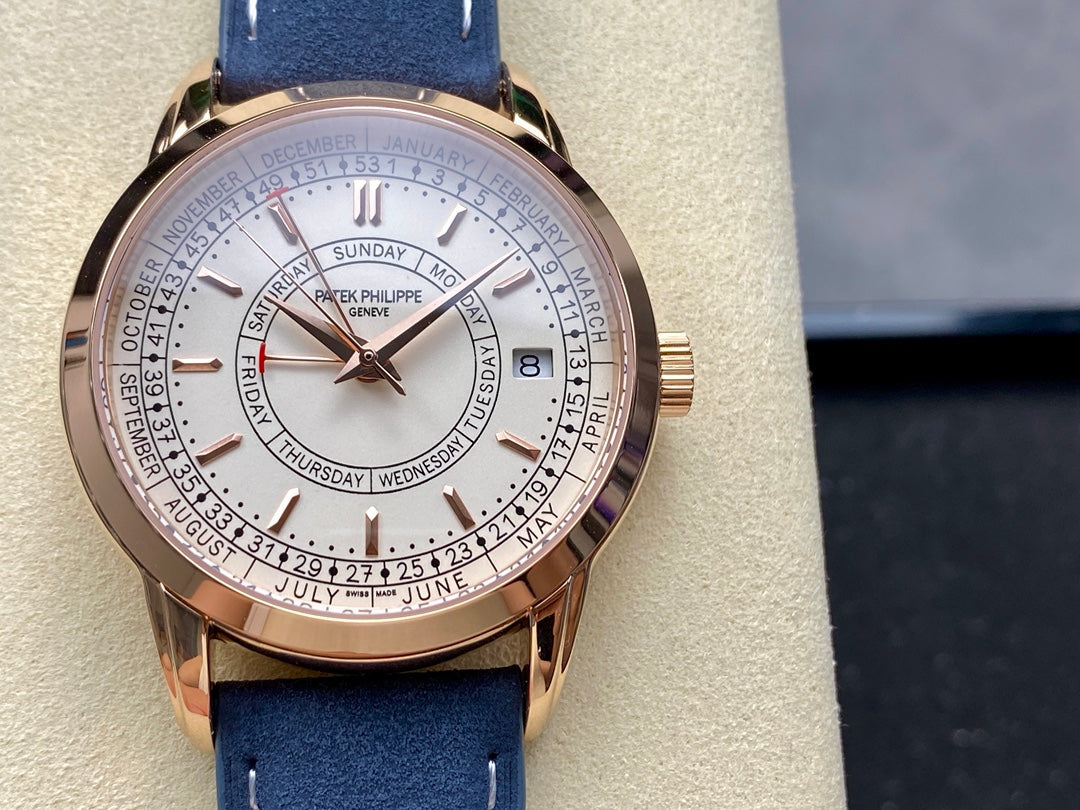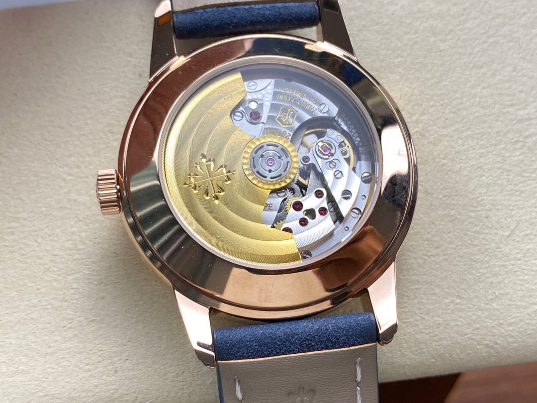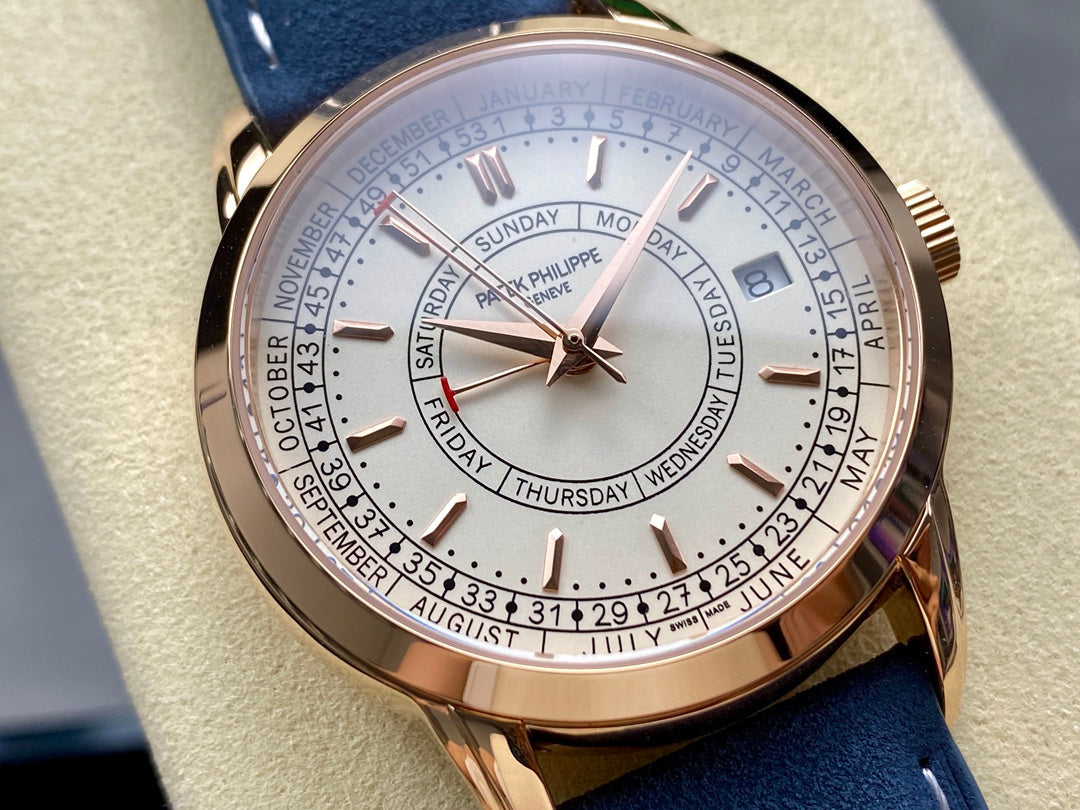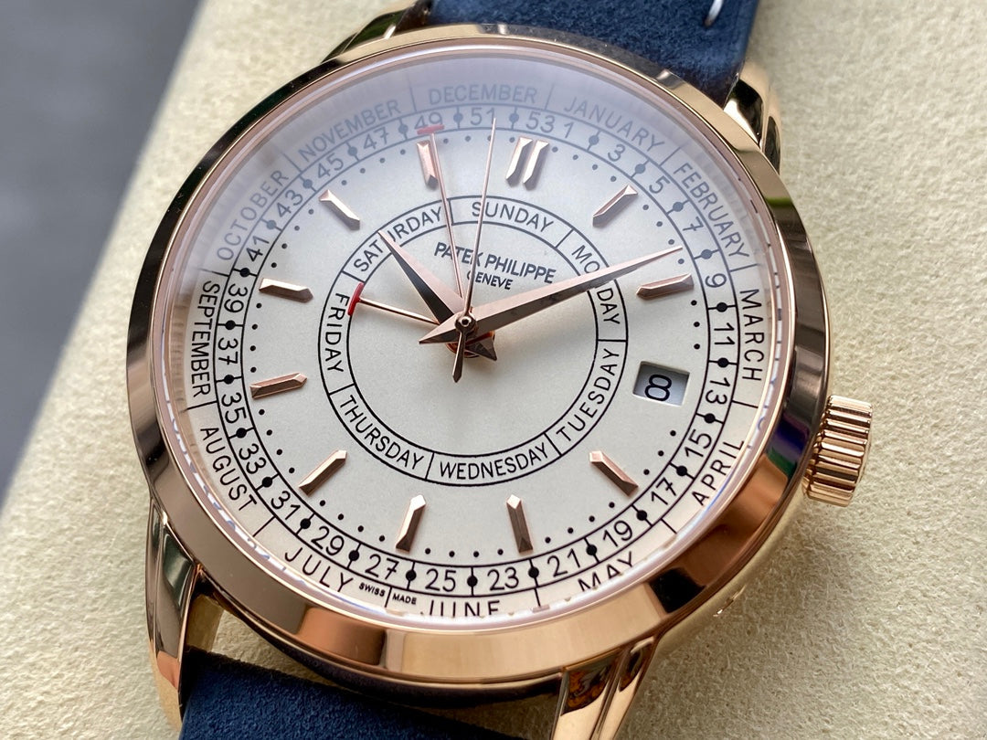 CALATRAVA ROSE GOLD CASE BLUE SUEDE STRAP