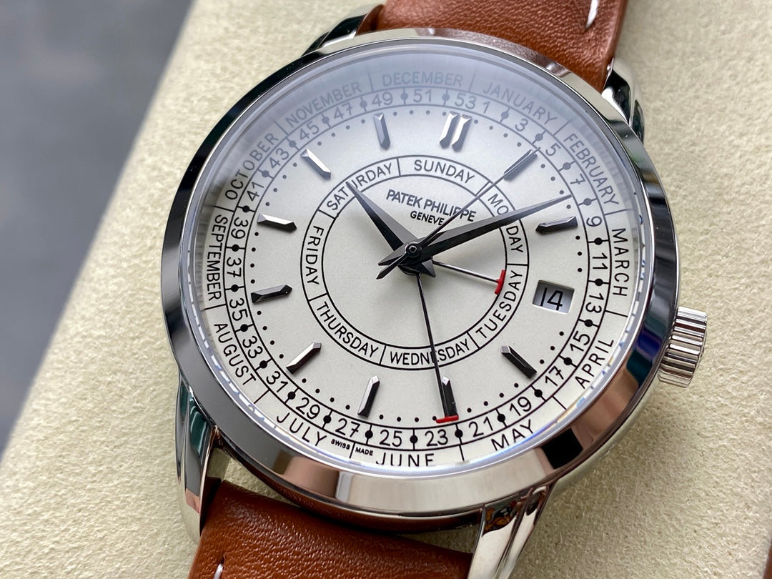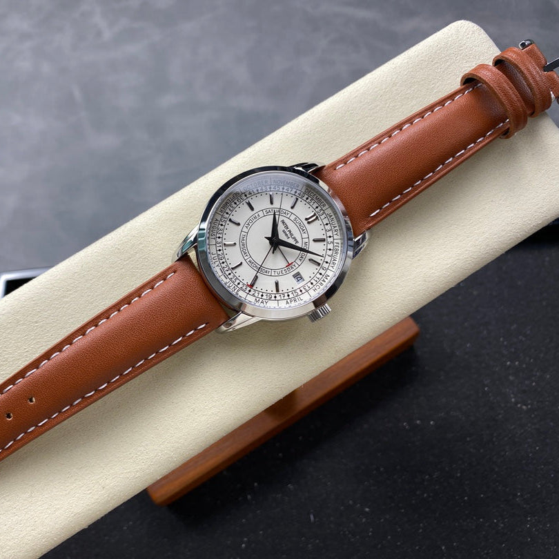 CALATRAVA STEEL CASE BROWN CALFSKIN STRAP