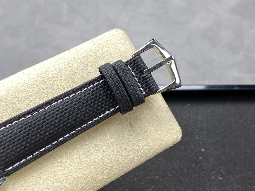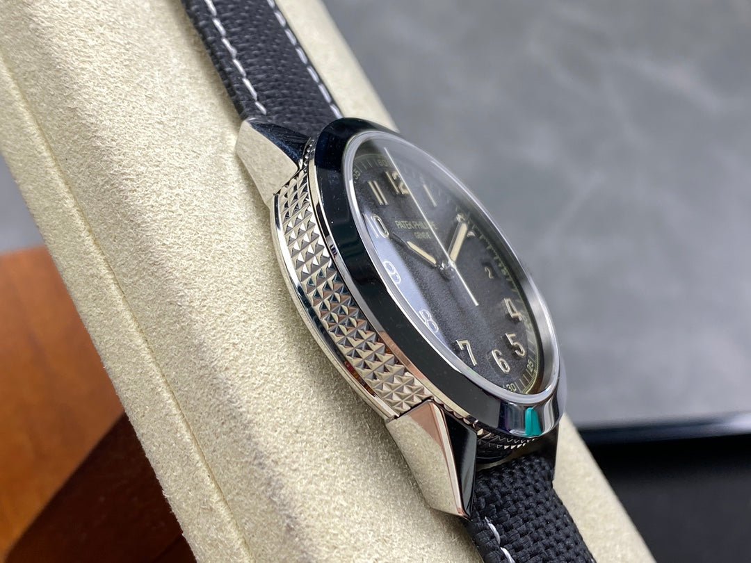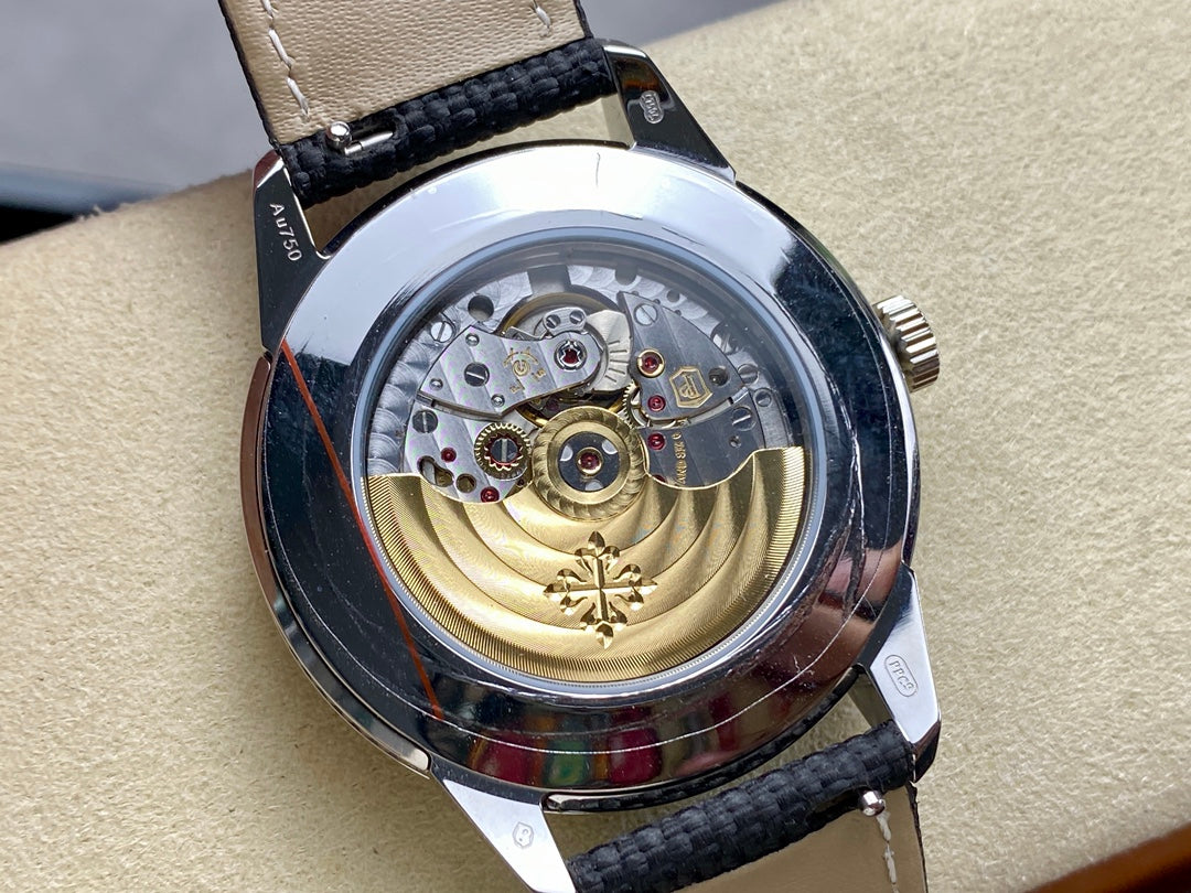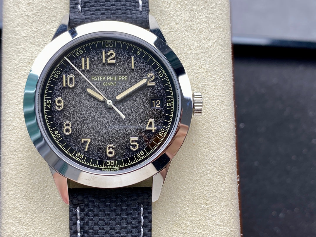 CALATRAVA WHITE GOLD CASE BLACK CALFSKIN EMBOSSED WITH FABRIC PATTERN
