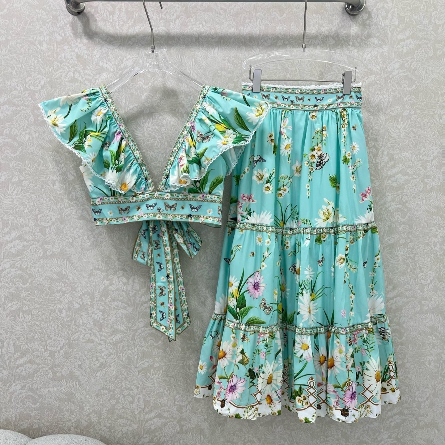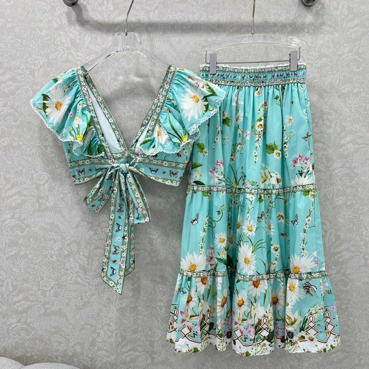 CAMILLA PLUS-SIZE V-NECK TOP AND FLARED SKIRT SET 275167