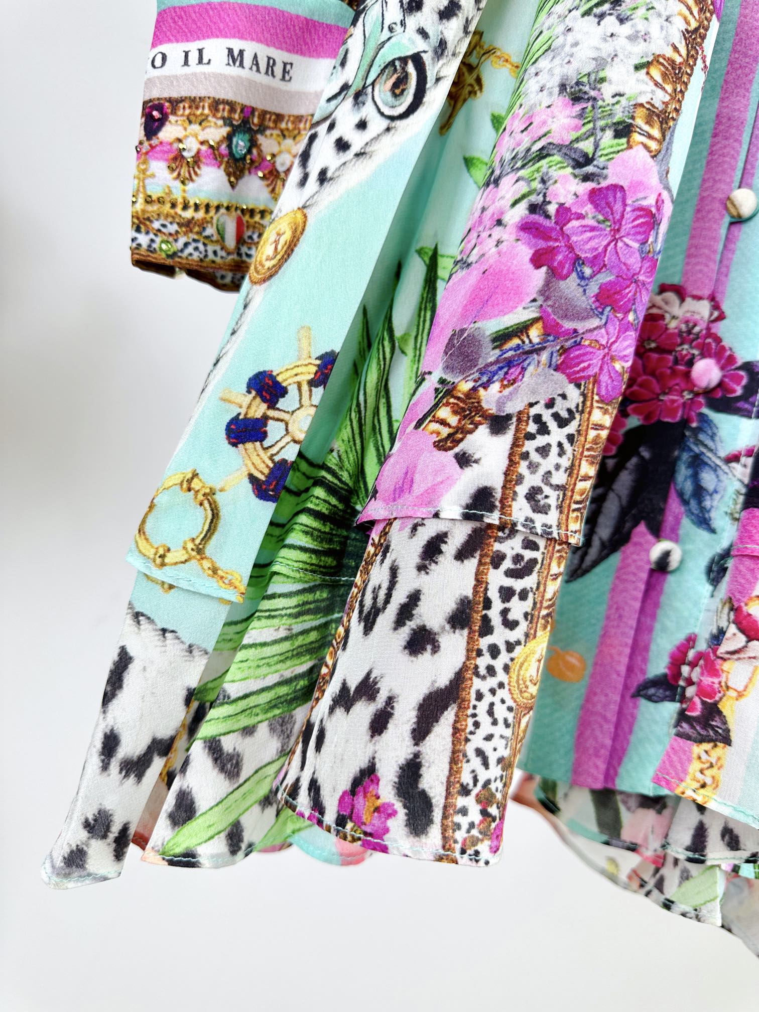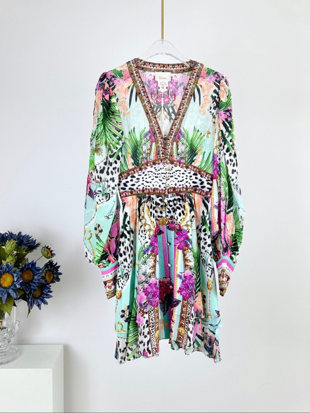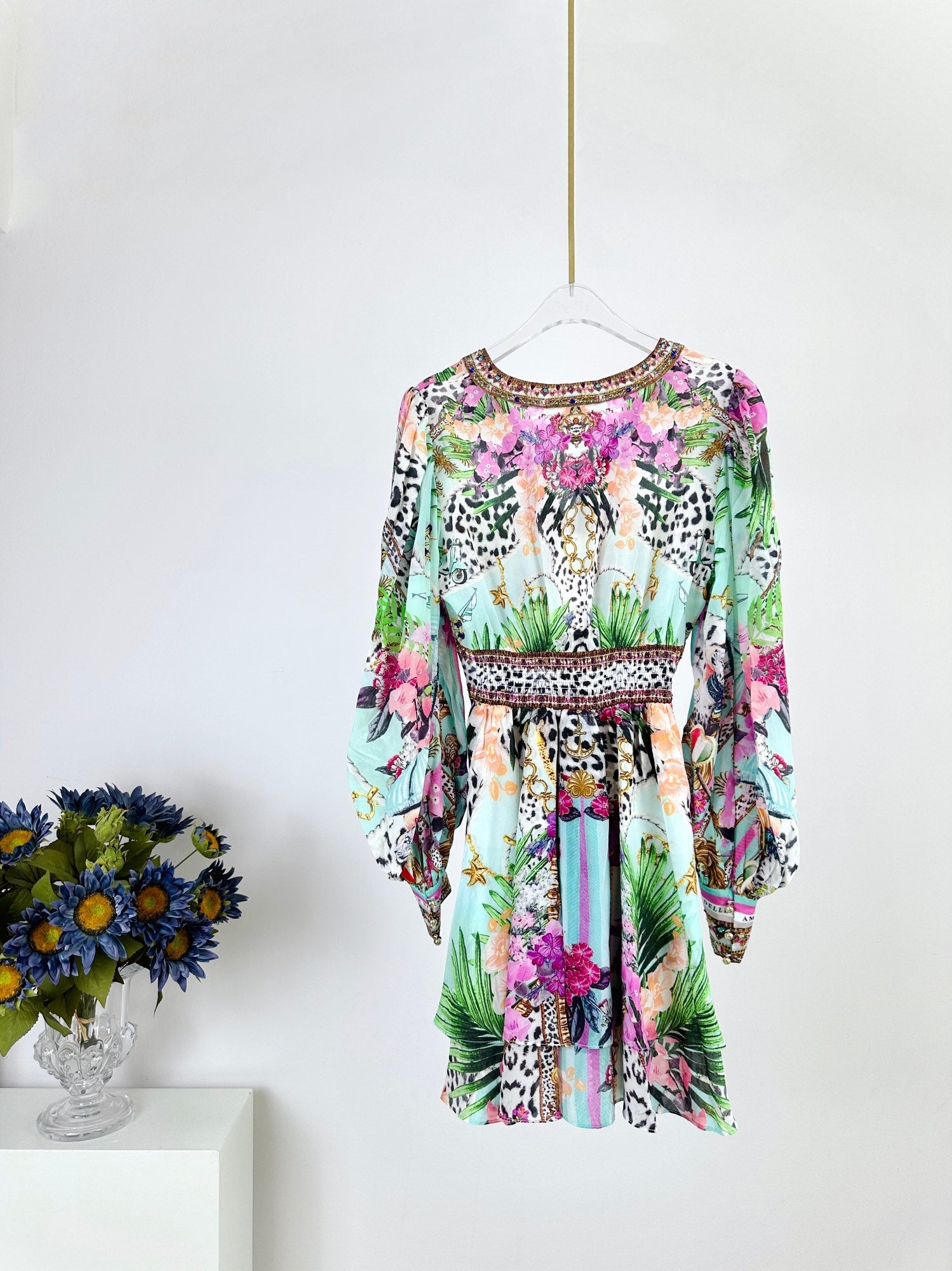 CAMILLA PRINTED SILK LONG-SLEEVE MINI DRESS 270346
