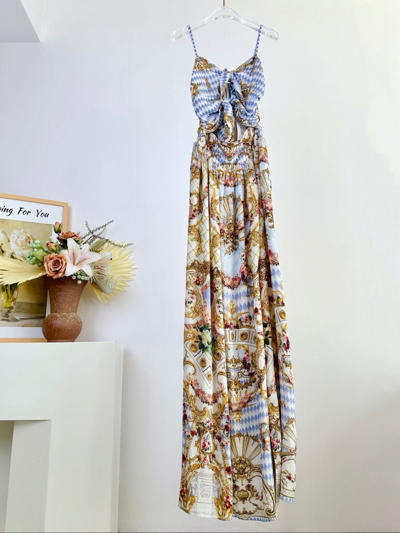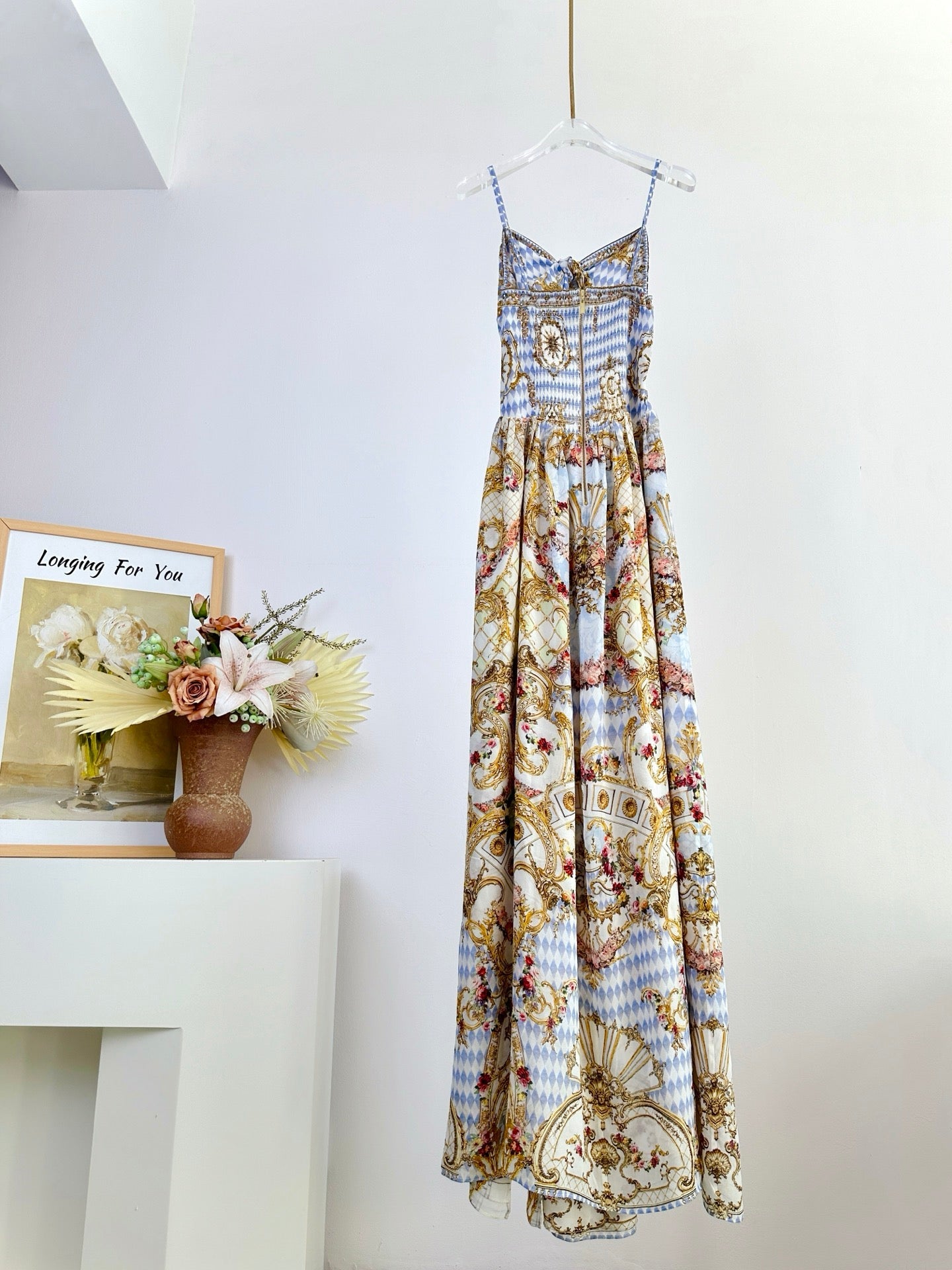 CAMILLA PRINTED SILK STRAP MAXI DRESS 270279