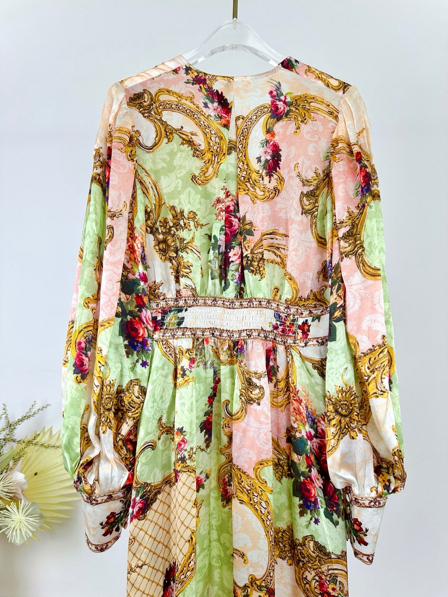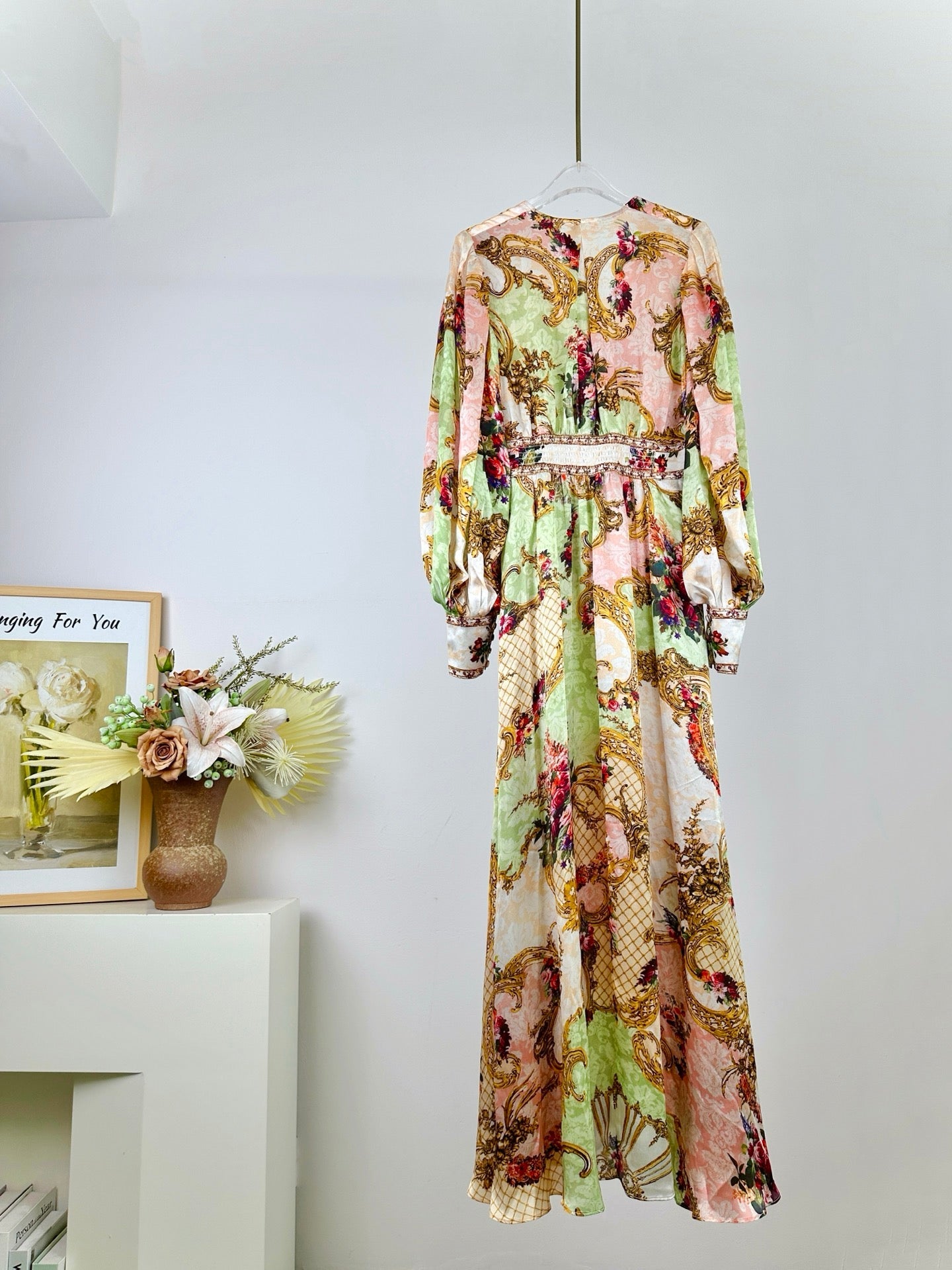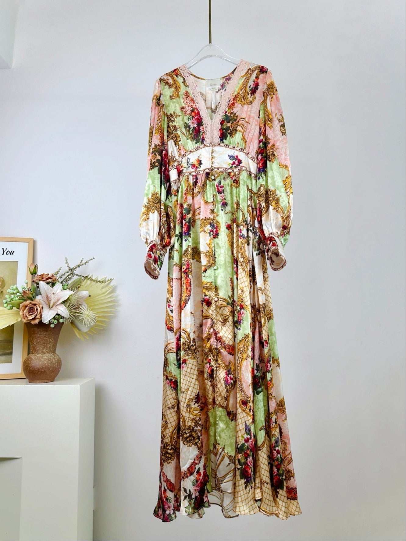 CAMILLA PRINTED SILK V-NECK MAXI DRESS 270290