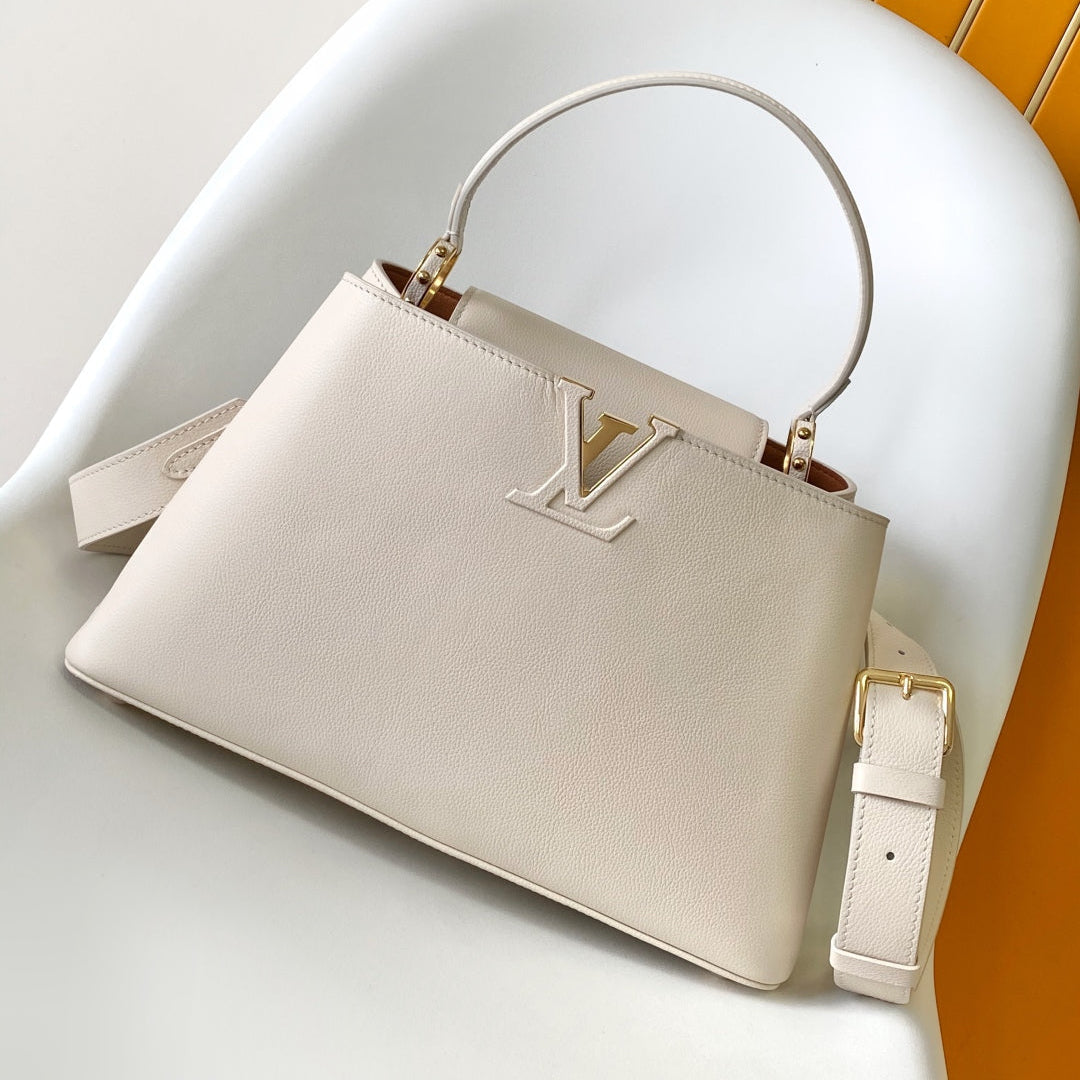 CAPUCINES 33 IN OFF WHITE CALFSKIN GOLD HARDWARE
