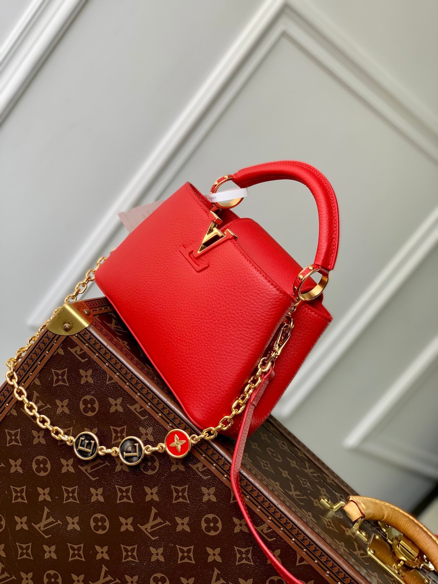 CAPUCINES MINI 23 IN RED TAURILLON GOLD HARDWARE