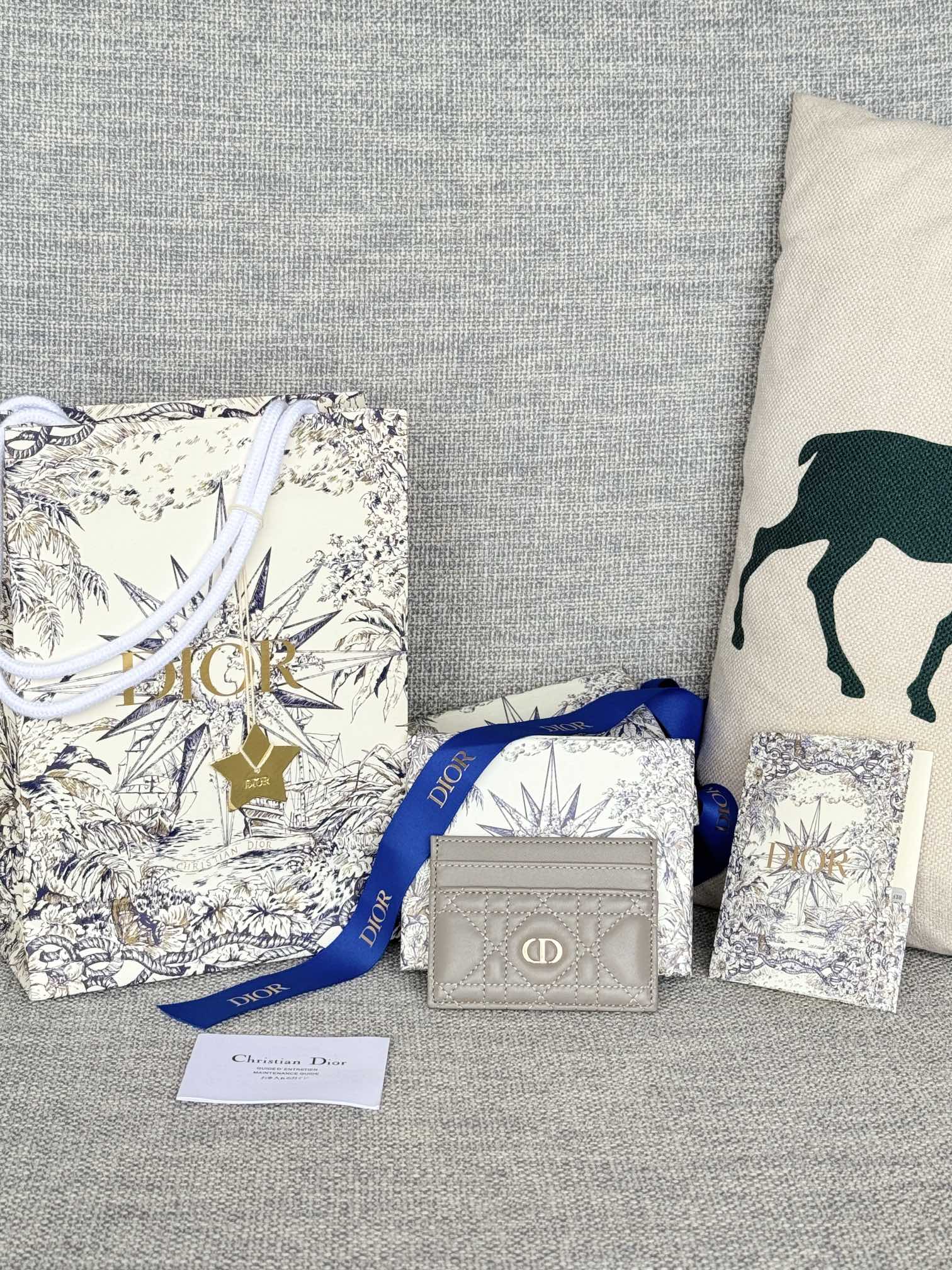 CARO FREESIA CARD HOLDER 10 IN LIGHT GREY CANNAGE CALFSKIN
