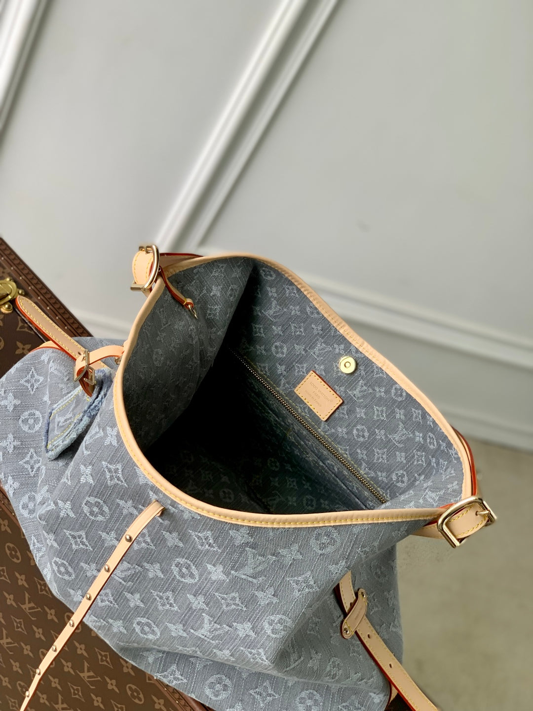 CARRYALL CARGO VIBE PM 33.5 IN GREY MONOGRAM DENIM LIGHT BROWN CALFSKIN