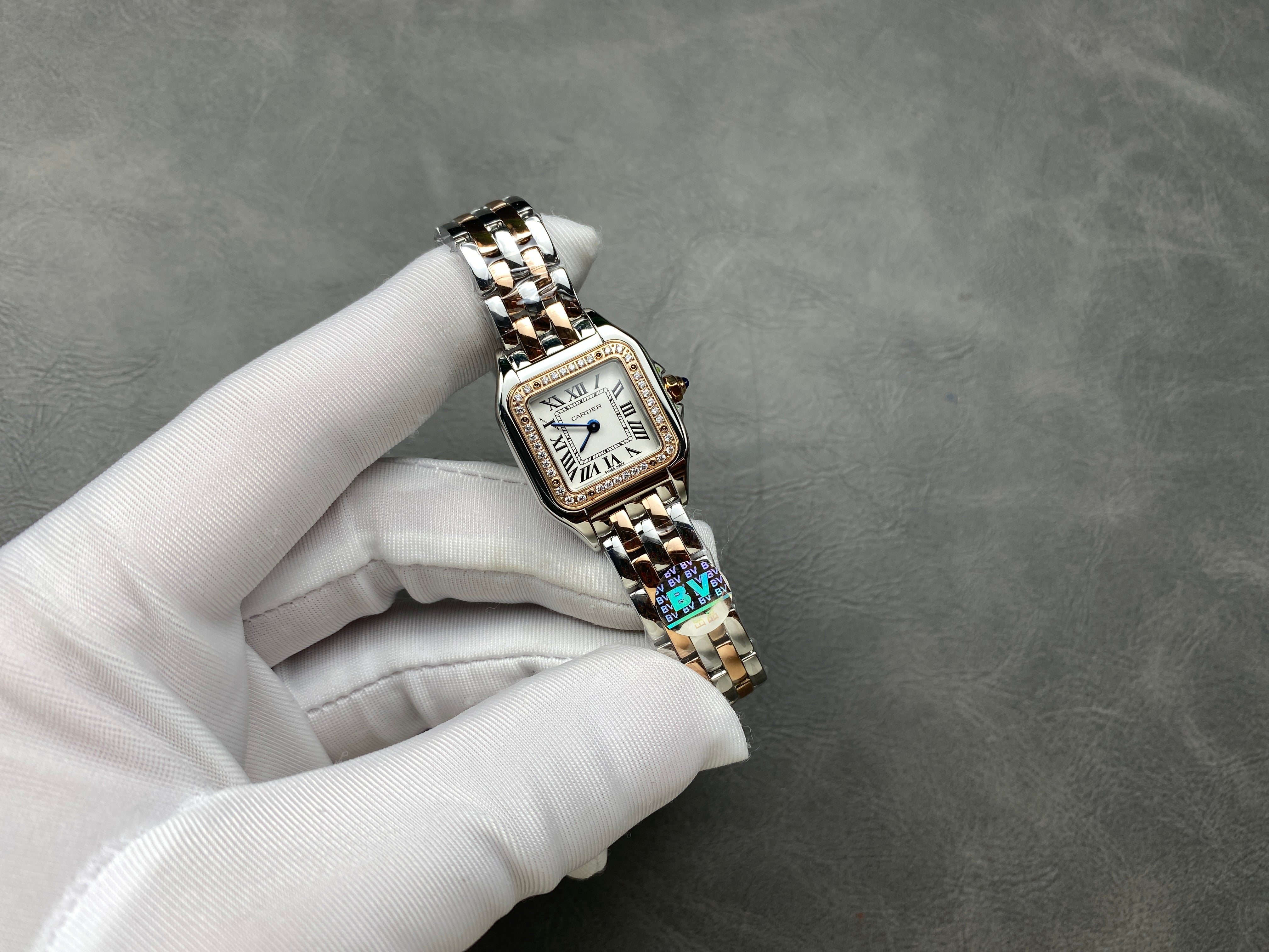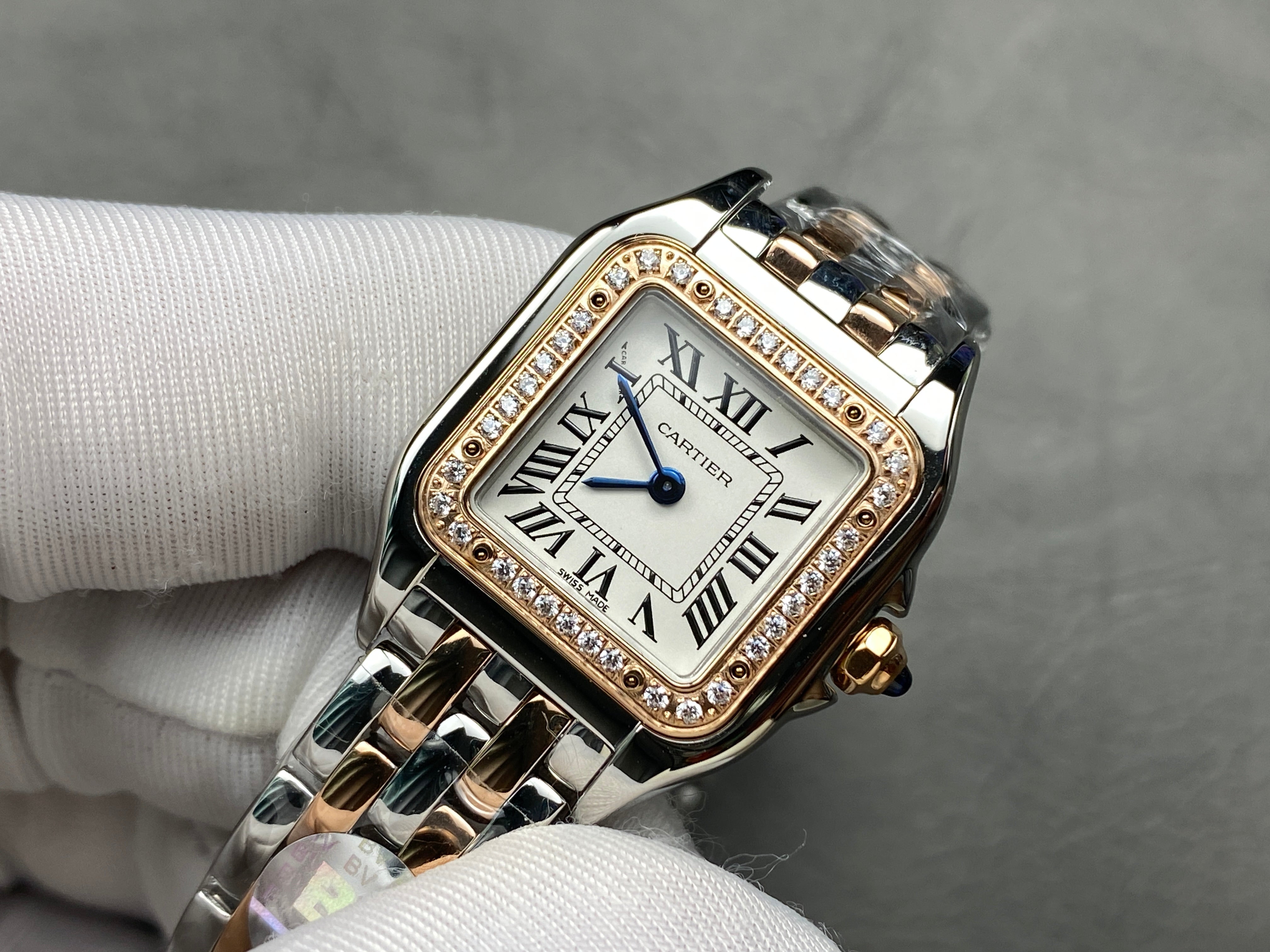 CARTIER PANTHÈRE SMALL WATCH GOLD PINK AND SILVER CASE WITH CRYSTALS