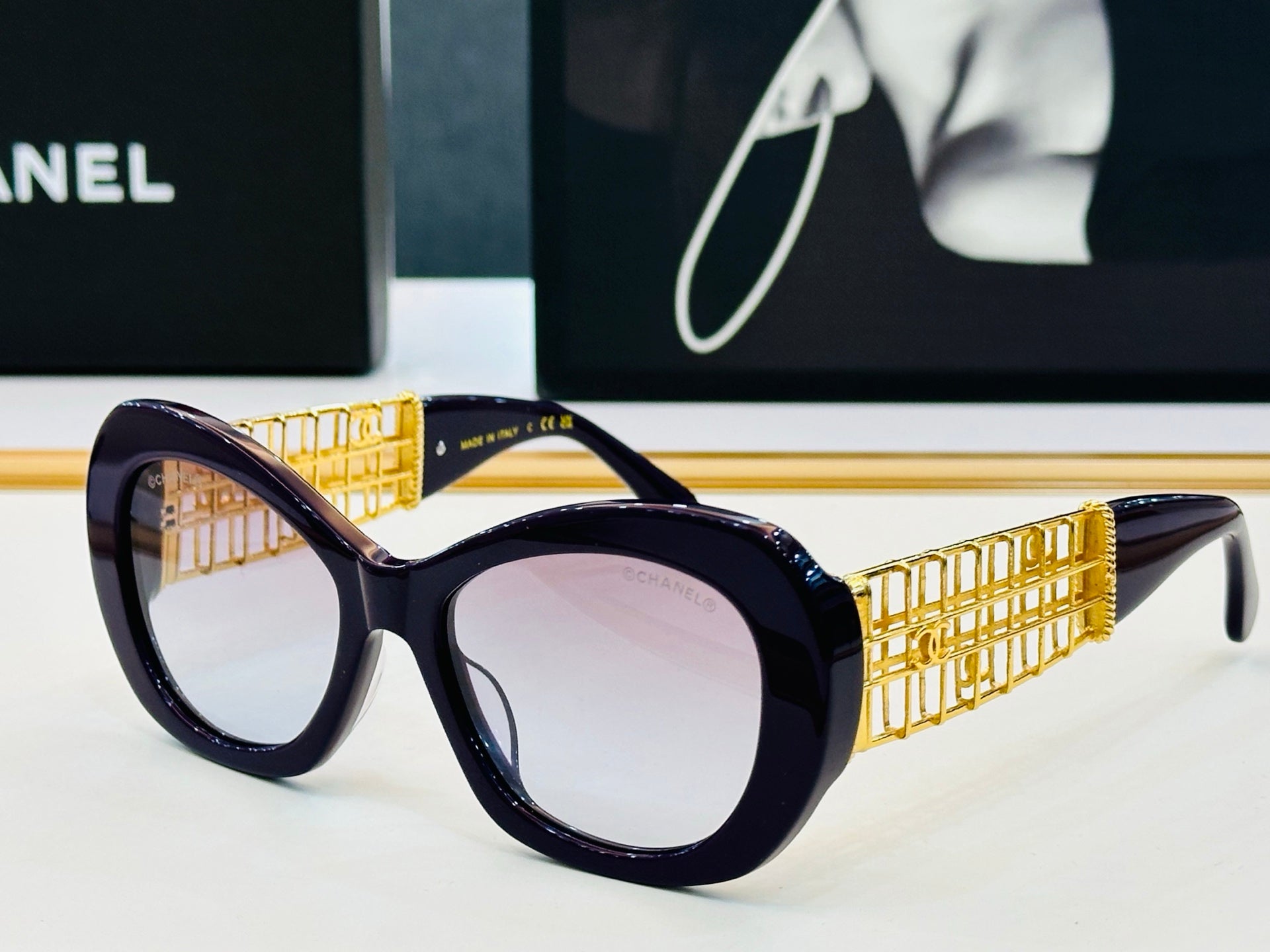 CAT EYE SUNGLASSES CH9170 IN ACETATE GOLD METAL