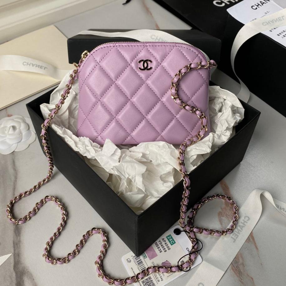 CC 16 CLASSIC CLUTCH WITH STRAP BAG IN LIGHT PURPLE LAMBSKIN