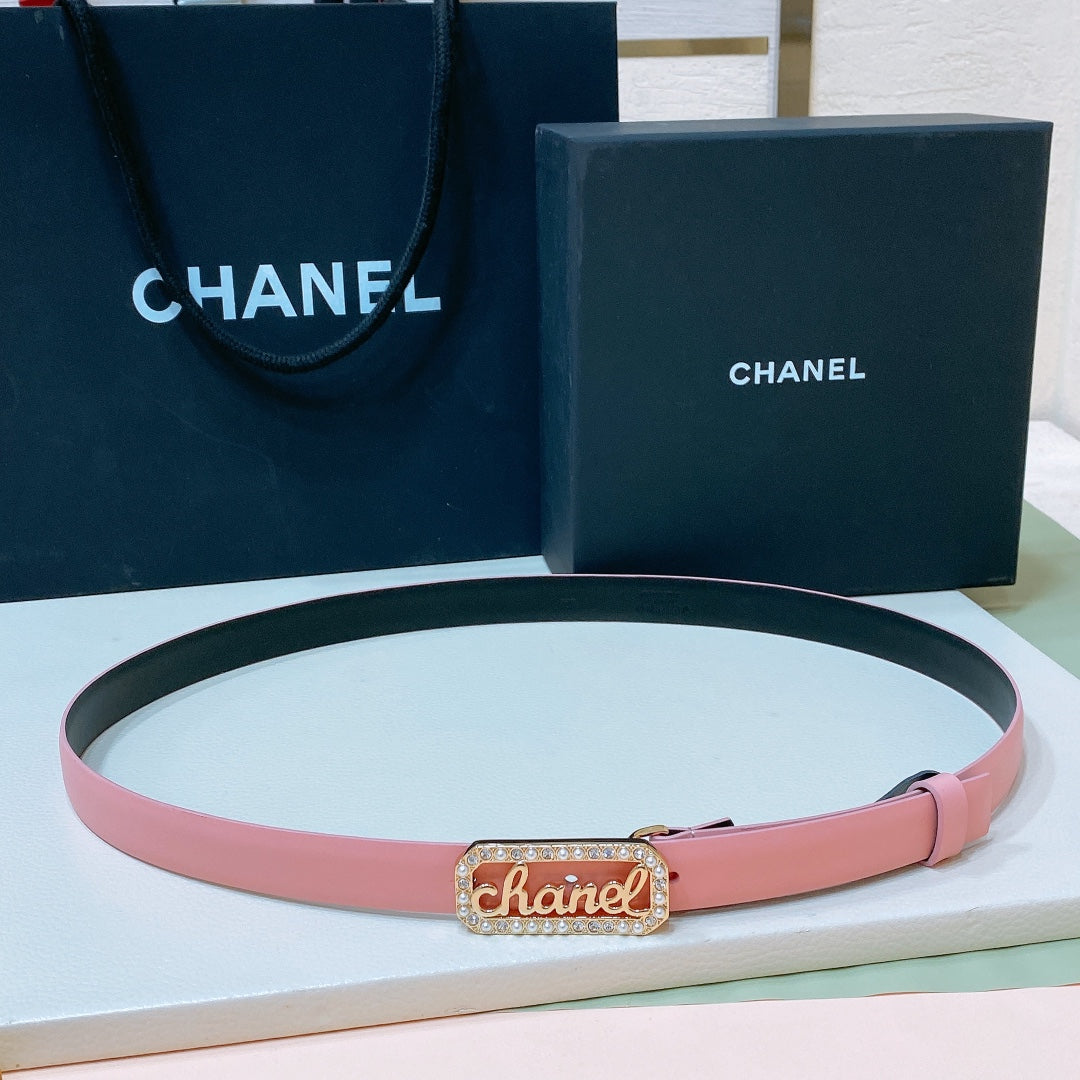 CC 20MM BELT RECTANGLE BUCKLE IN LIGHT PINK CALFSKIN GOLD HARDWARE