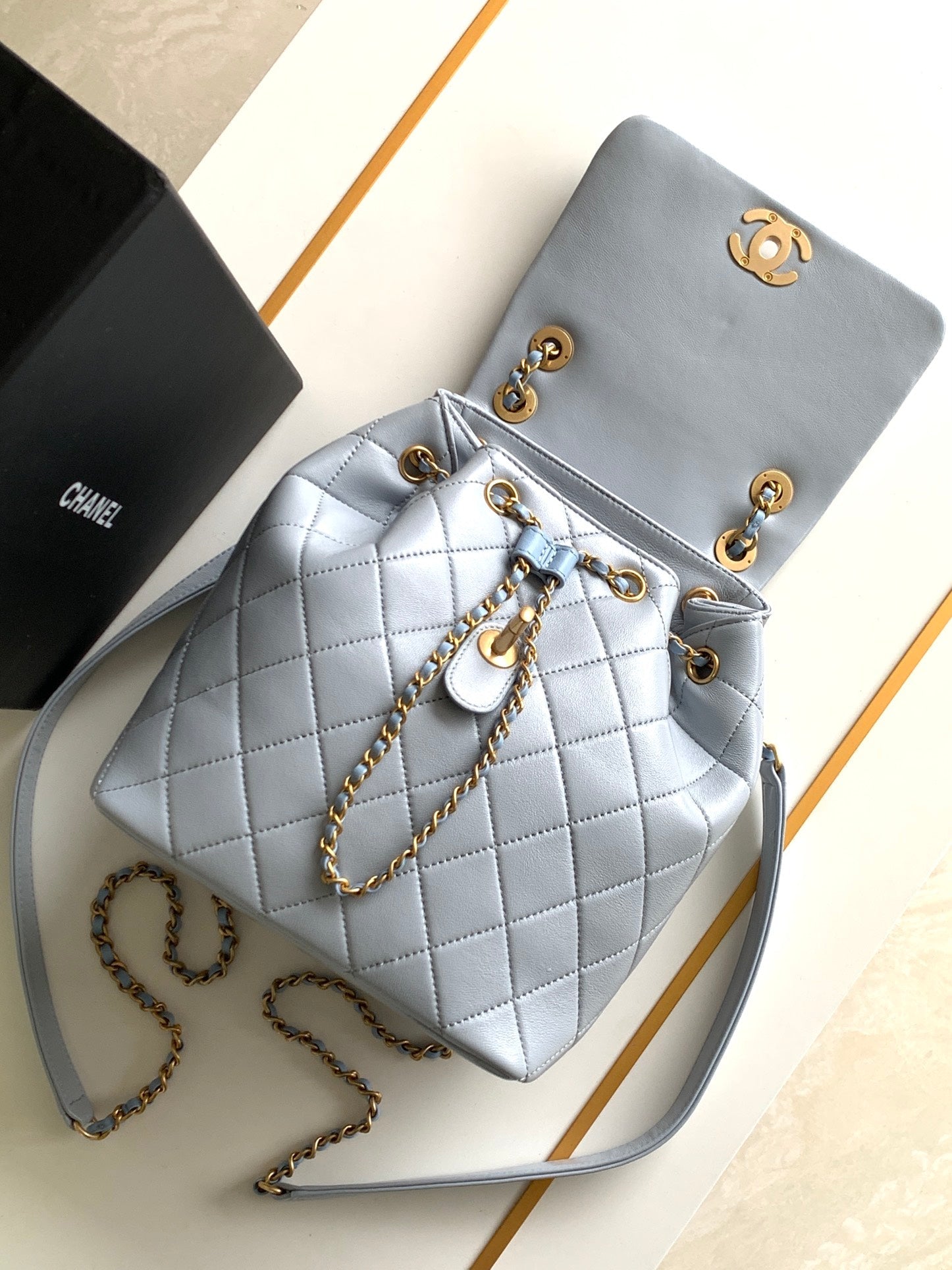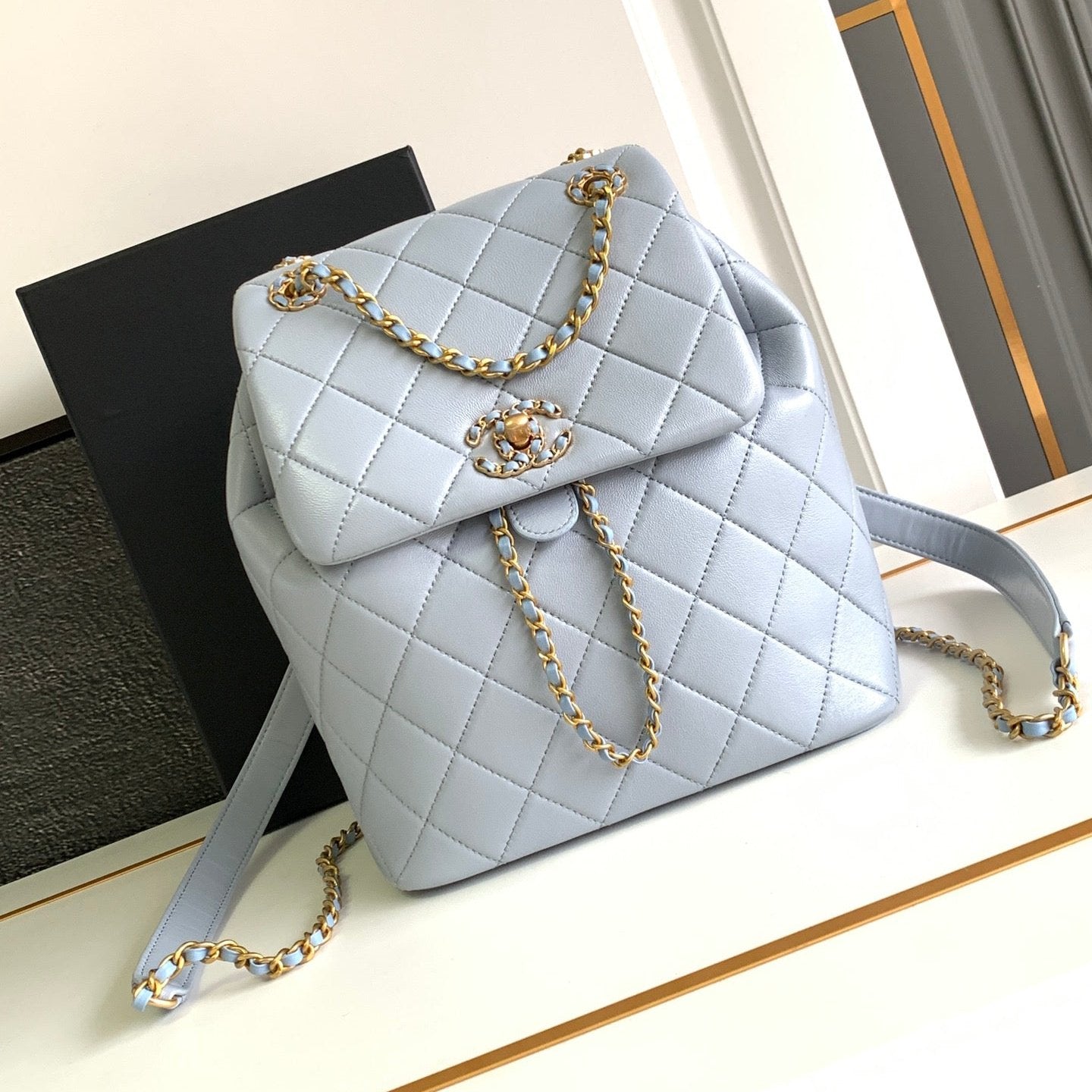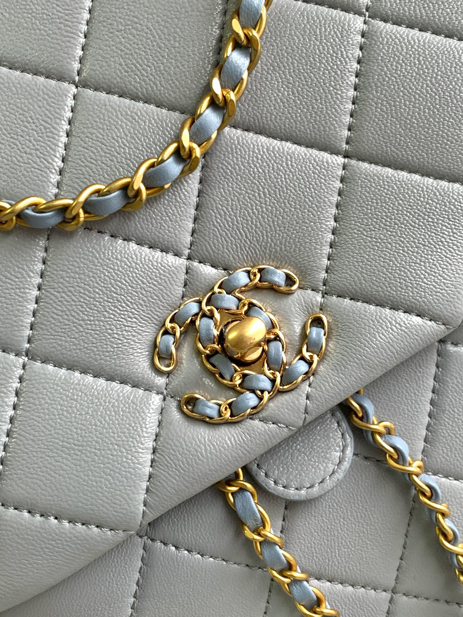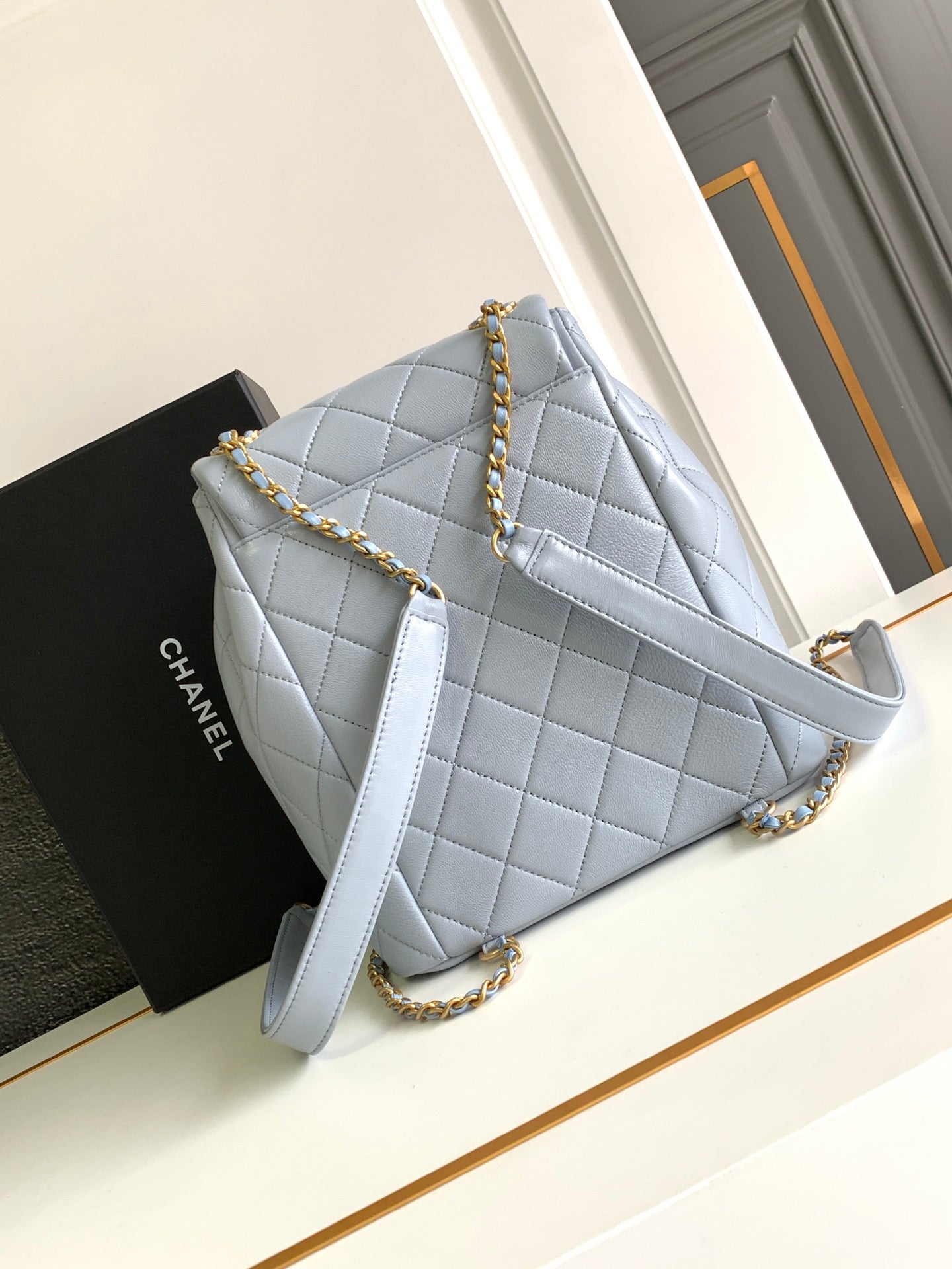 CC 25 BACKPACK IN LIGHT GREY CALFSKIN GOLD HARDWARE