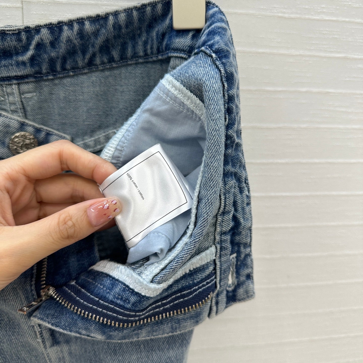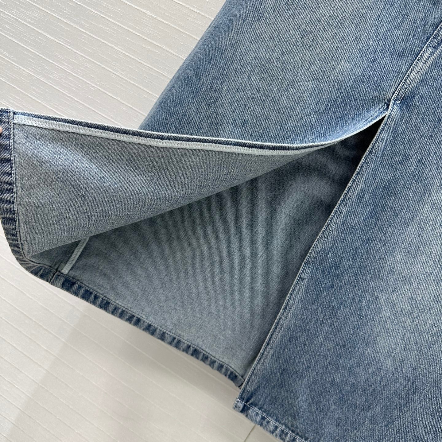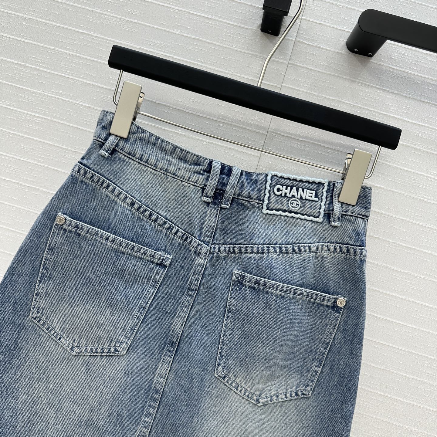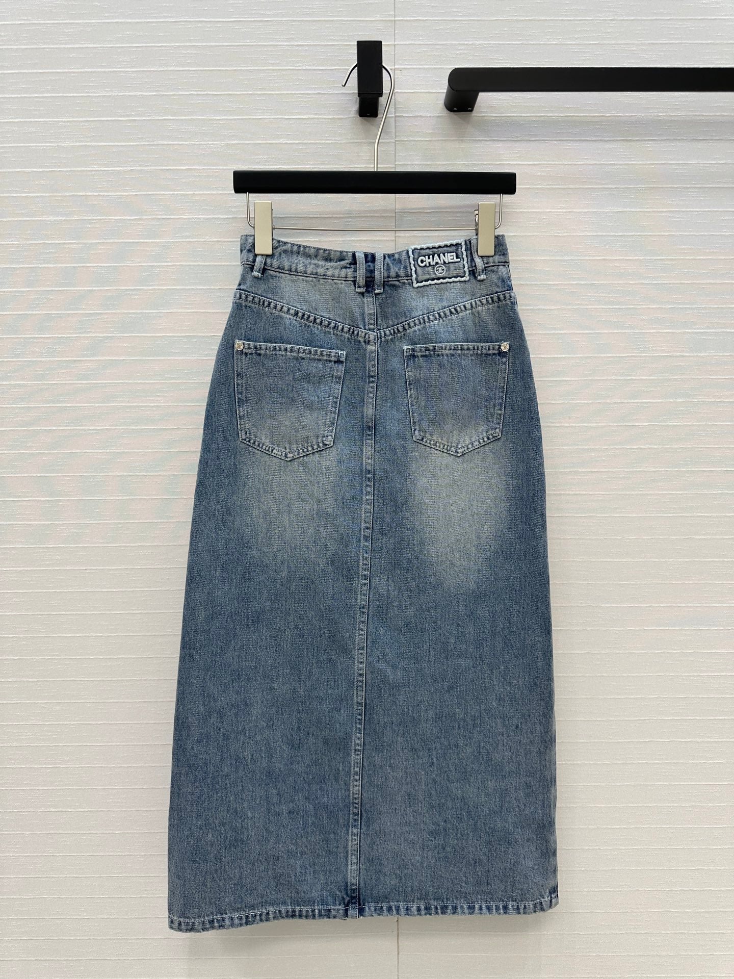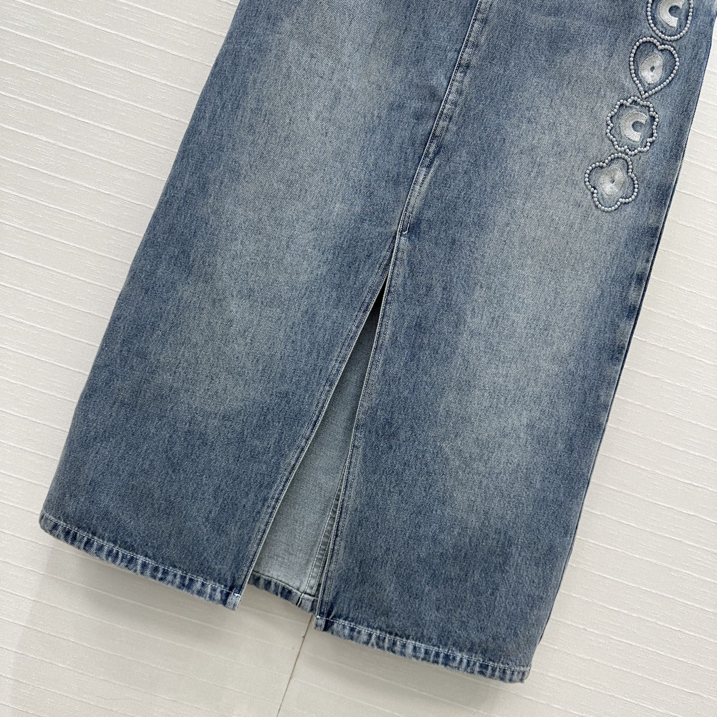 CC 25 Embroidered Midi Skirt Blue Denim Cotton
