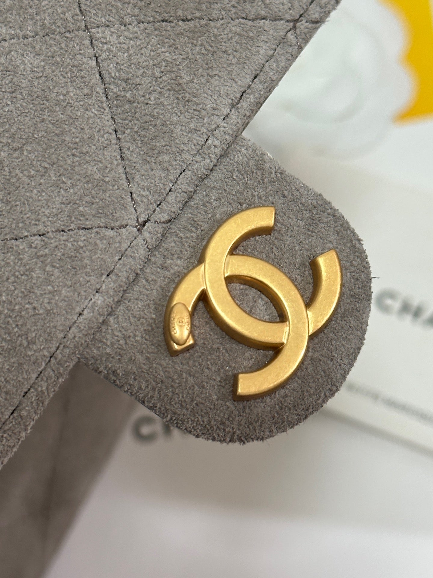 CC 25 HANDBAG 30 IN NATURAL GREY SUEDE GOLD HARDWARE