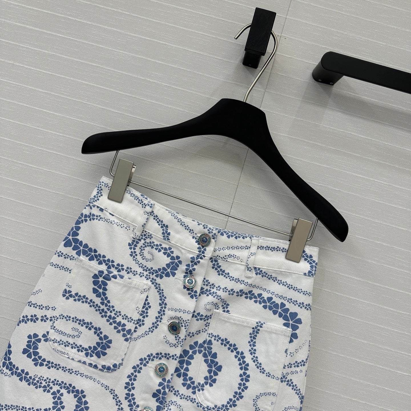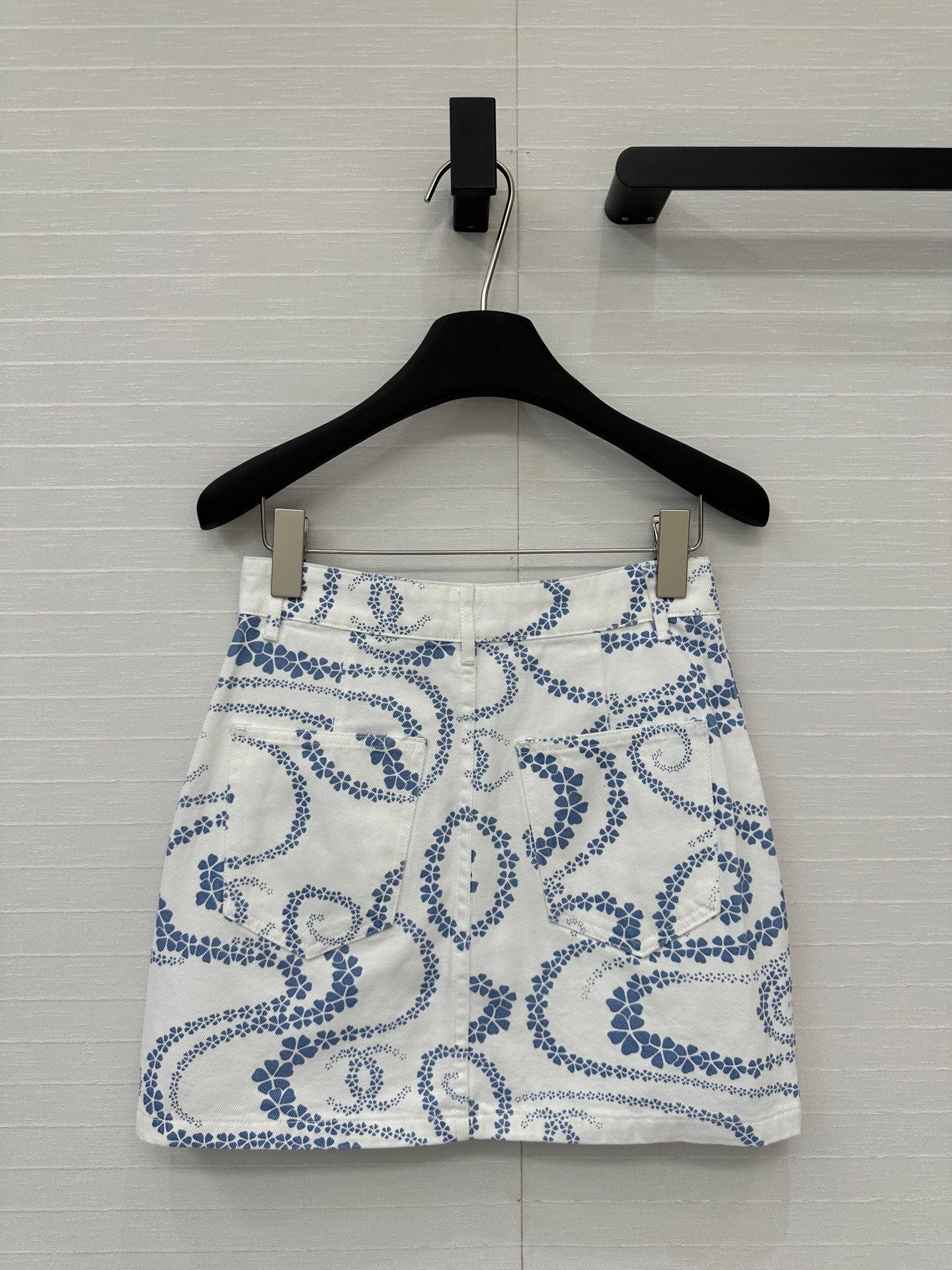 CC 25 Printed Denim Single-breasted Short Skirt Blue White Cotton