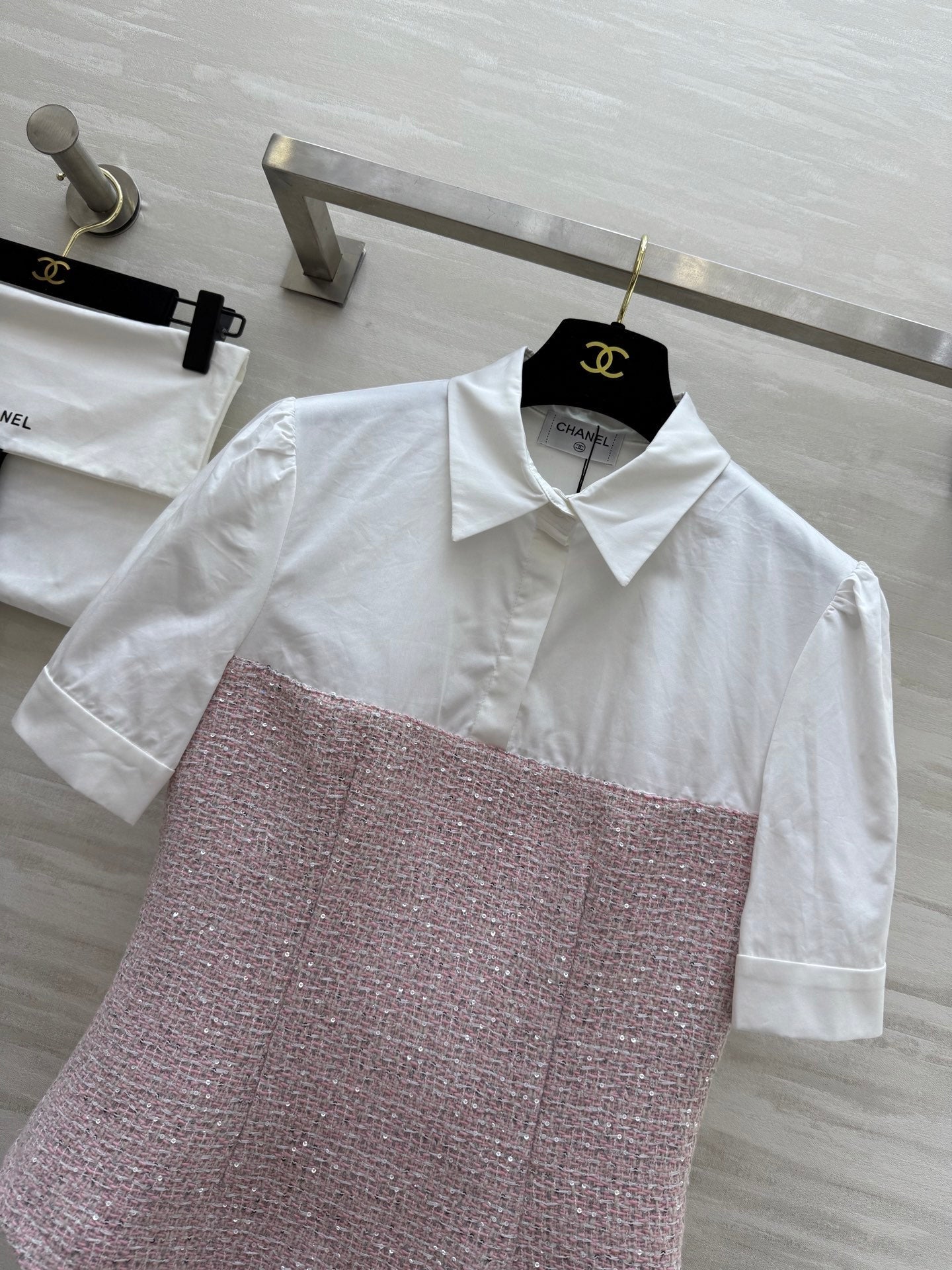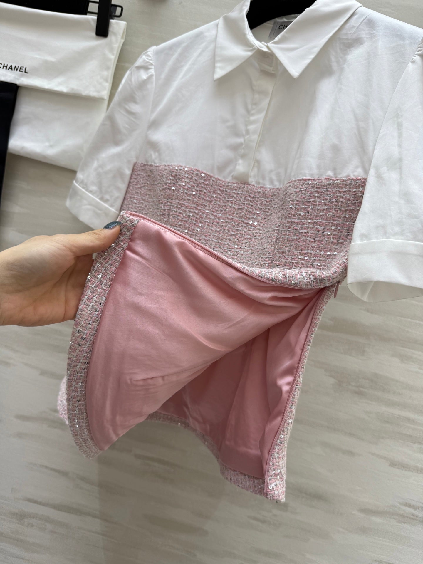 CC 25 Short Sleeved Tweed Pink Tweed Fabric